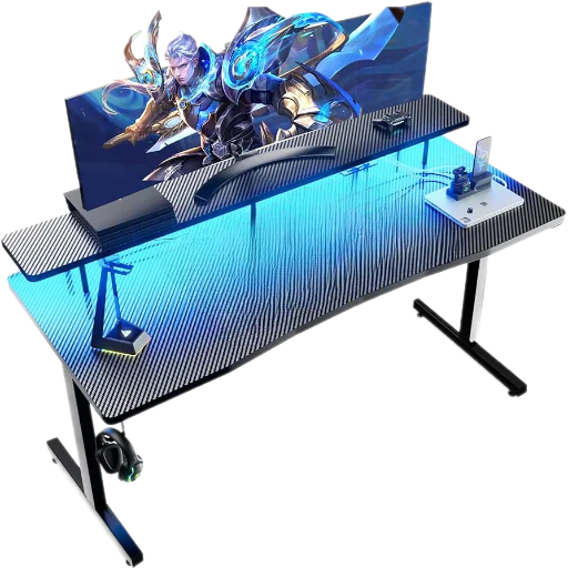 Gaming Desk With Y-Shaped Legs, RGB Lighting With 9 Modes, Carbon Fiber Texture Surface, 120×60 cm Space, Headphone & Cup Holders, 18mm MDF Board Build | BLACK