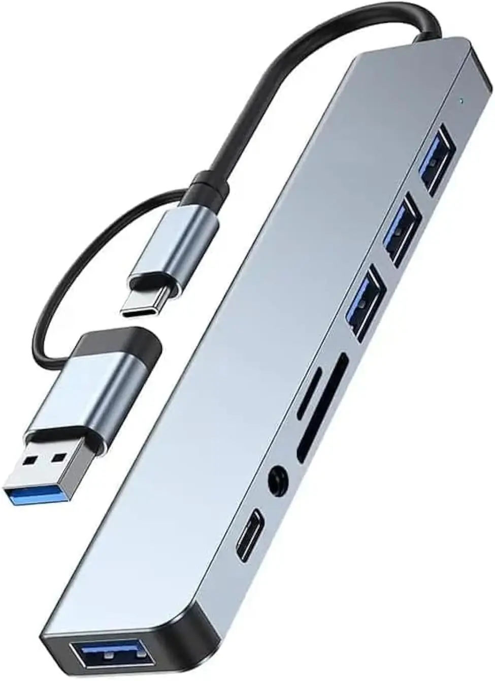 8-in-1 Type-C Hub with USB 3.0, 100W PD Charging, SD/TF Card Slots, 3.5mm Audio Jack for Laptops and PCs