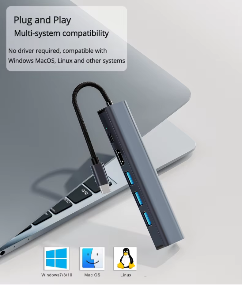4-in-1 USB Hub With 4× USB 3.0 (5Gbps), 100W PD Fast Charging Multiport Adapter For Windows, Mac & Linux