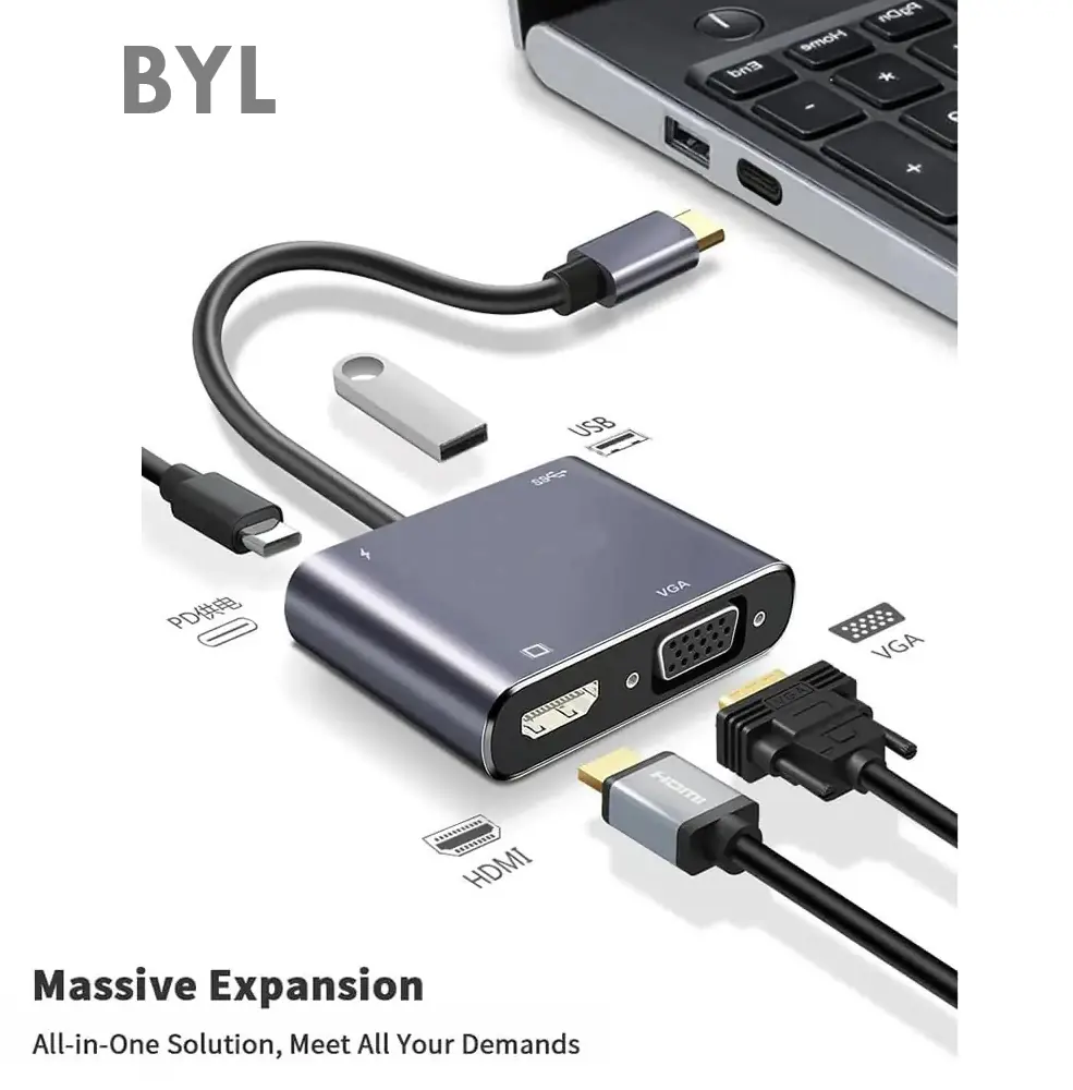 7 IN 1 ; Type-C to ( HDMI 4K 30Hz + USB3.0 + PD100W fast charge ) Docking Station HUB ; UNIVERSALLY COMPATIBLE – BYL-2312