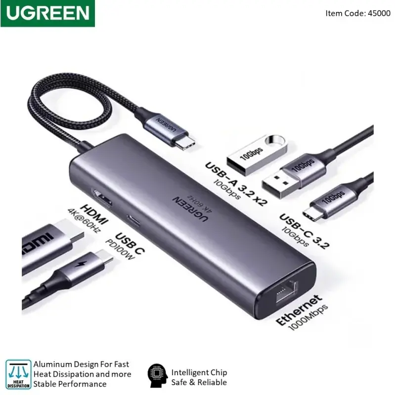 4-in-1 USB Hub With 4× USB 3.0 (5Gbps), 100W PD Fast Charging Multiport Adapter For Windows, Mac & Linux