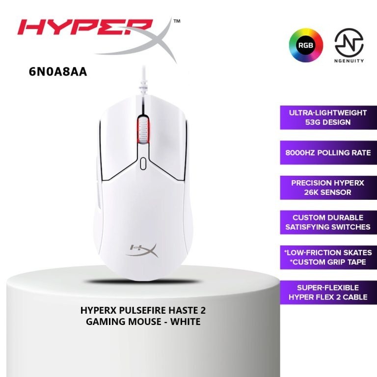 HyperX Pulsefire Haste 2 Wired Gaming Mouse- Ultra Lightweight, 53g, 8000Hz Polling Rate, Precision Sensor, Hyperflex 2 Cable, Plug and Play – White/OPEN BOX