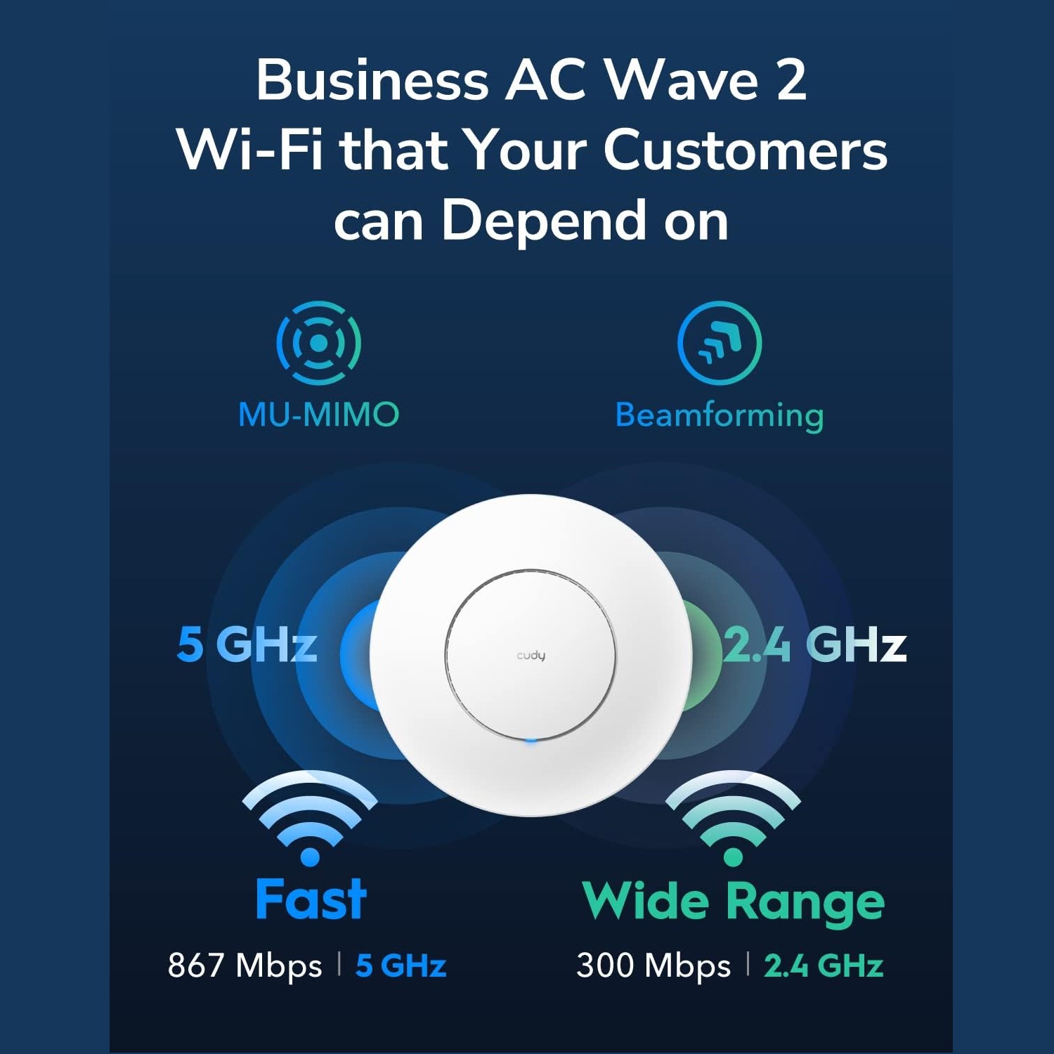 - Superior AC1200 Dual Band Speeds with MU-MIMO. Designed with the latest 802.11ac Wave 2 technology, Cudy AP1300 can reliably delivers dual-band Wi-Fi speeds up to 867 Mbps + 300 Mbps to multiple devices simultaneously.