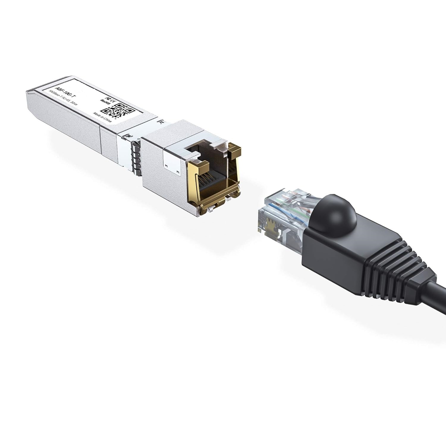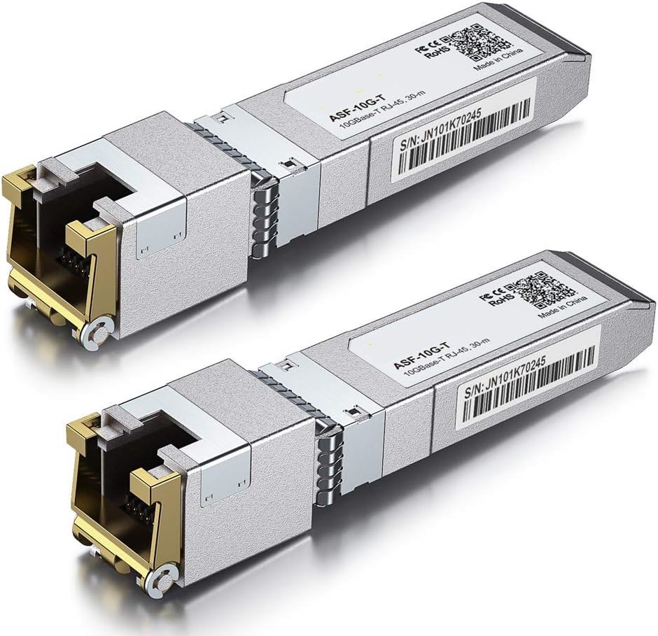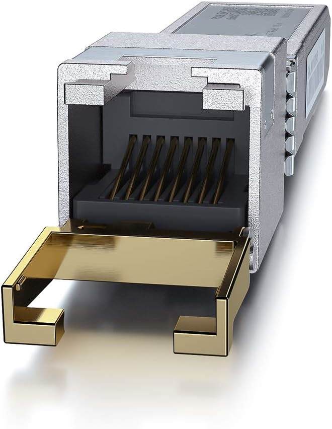 • ✅RJ-45 Connector: 10Gb SFP+ to RJ45 Ethernet Copper Module supports 10 Gigabit over Cat 6a/7/8 cable, up to 30 meters (98ft). Supprots 5Gb/2.5Gb rate over Cat 5e cable or better,up to 50 meters (164ft). Supprots 1000M rate over Cat 5e cable or better,up to 100 meters (328ft).