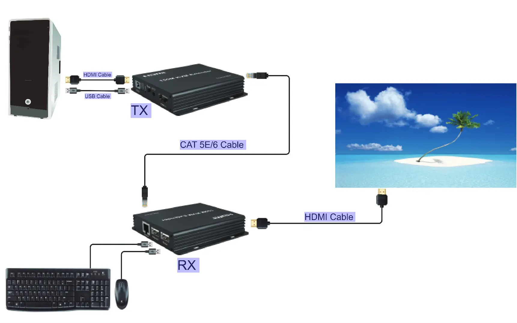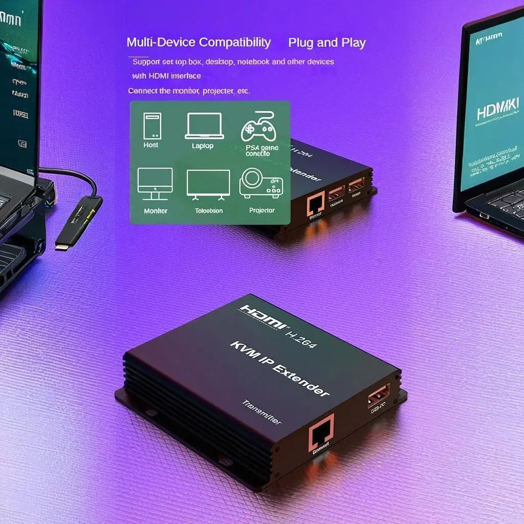 150m HDMI KVM Extender Over Ethernet Cat5e/Cat6, Supports 1080P, IR Control, USB Keyboard & Mouse Extension, Low Power, Plug-and-Play, Ideal for Conference, Home Theater, and AV Applications