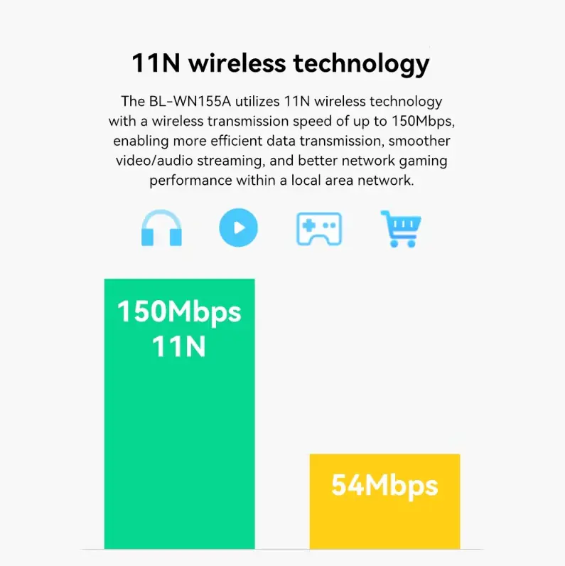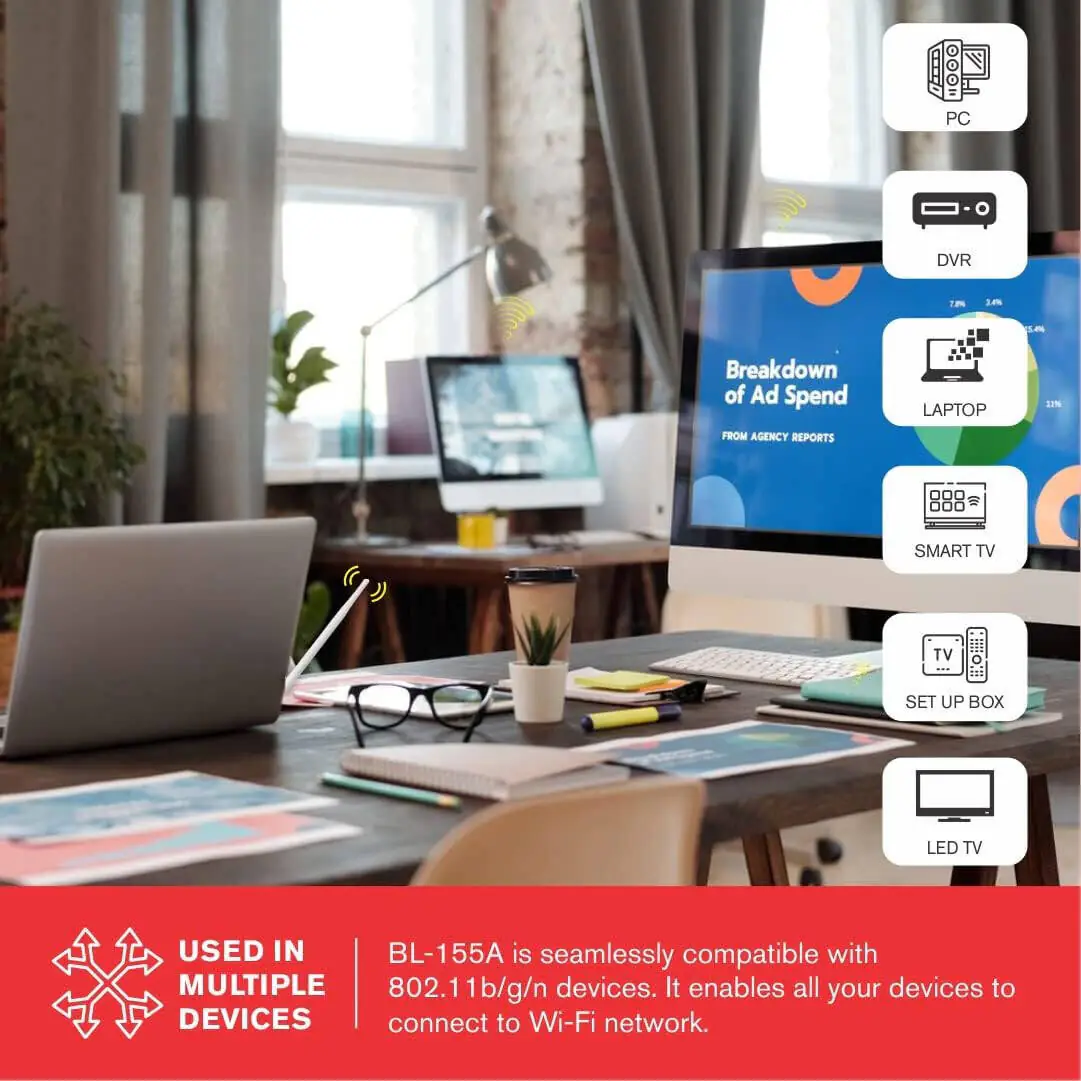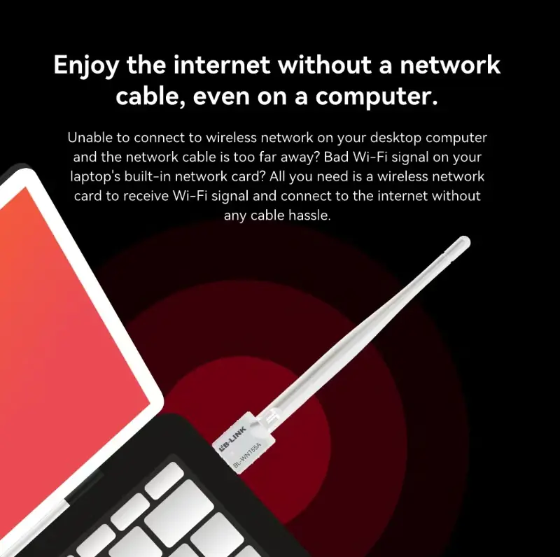 - Briefing : LB-Link WN155A 150Mbps High Gain Wireless USB Adapter, Realtek 8188 Chipset, 5dBi Antenna, Wi-Fi 4 (802.11n), 64/128 WEP, WPA/WPA2 Security, USB2.0, Seamlessly Compatible with 802.11b/g/n