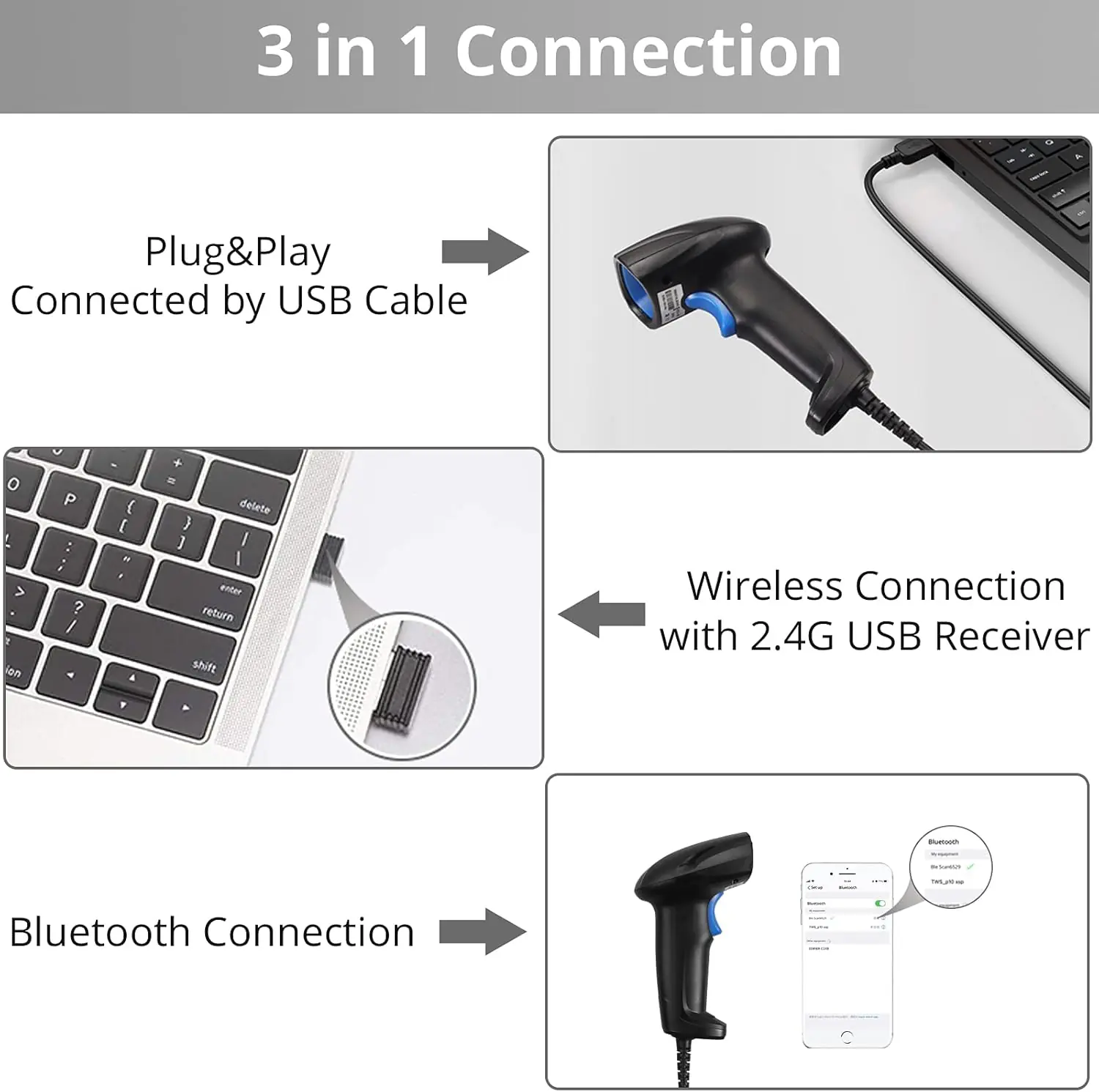 Wireless QR Code & Barcode Scanner Reader with 2.4G Bluetooth receiver for Computers, NetumScan 1D 2D Automatic Handhold USB Barcode Scanner for Store, Warehouse POS | AOQI-A82