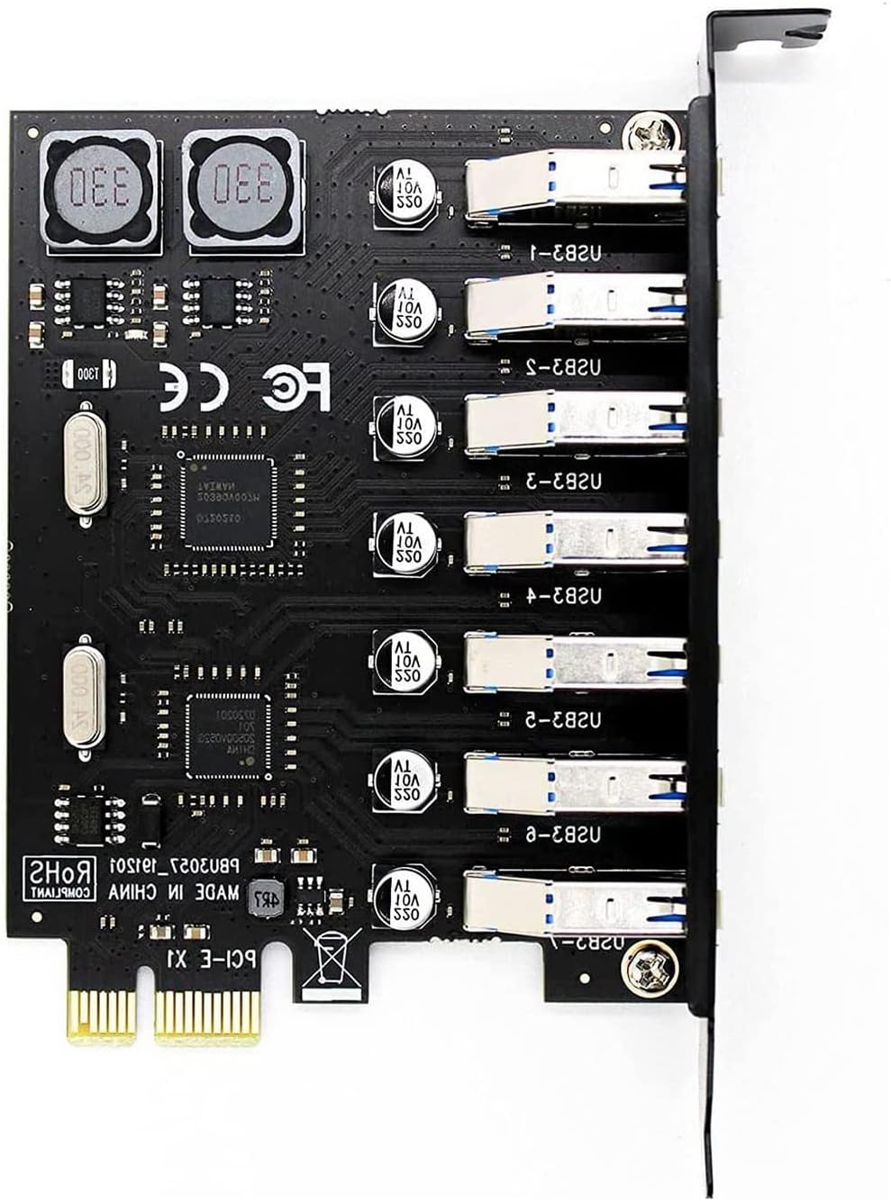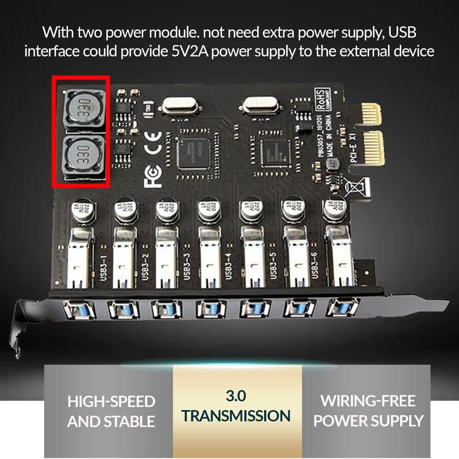 7 Ports USB 3.0 PCI Express Adapter Card USB Expansion Card, PCIe Riser Card for PC, Linux/WindowsXP/ 7/8/ 8.1/10, Black | SPB300