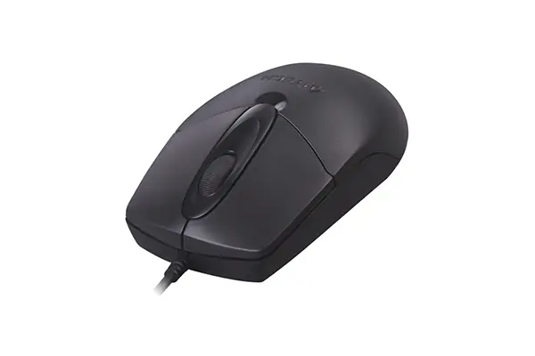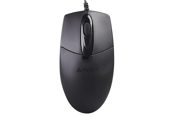 A4TECH OP-720S Wired Optical Mouse – Silent Click, 1200 DPI, 4-Way Dust-Resistant Wheel, USB/PS2, Ergonomic Symmetric Design, Plug & Play, 5M Click Lifespan