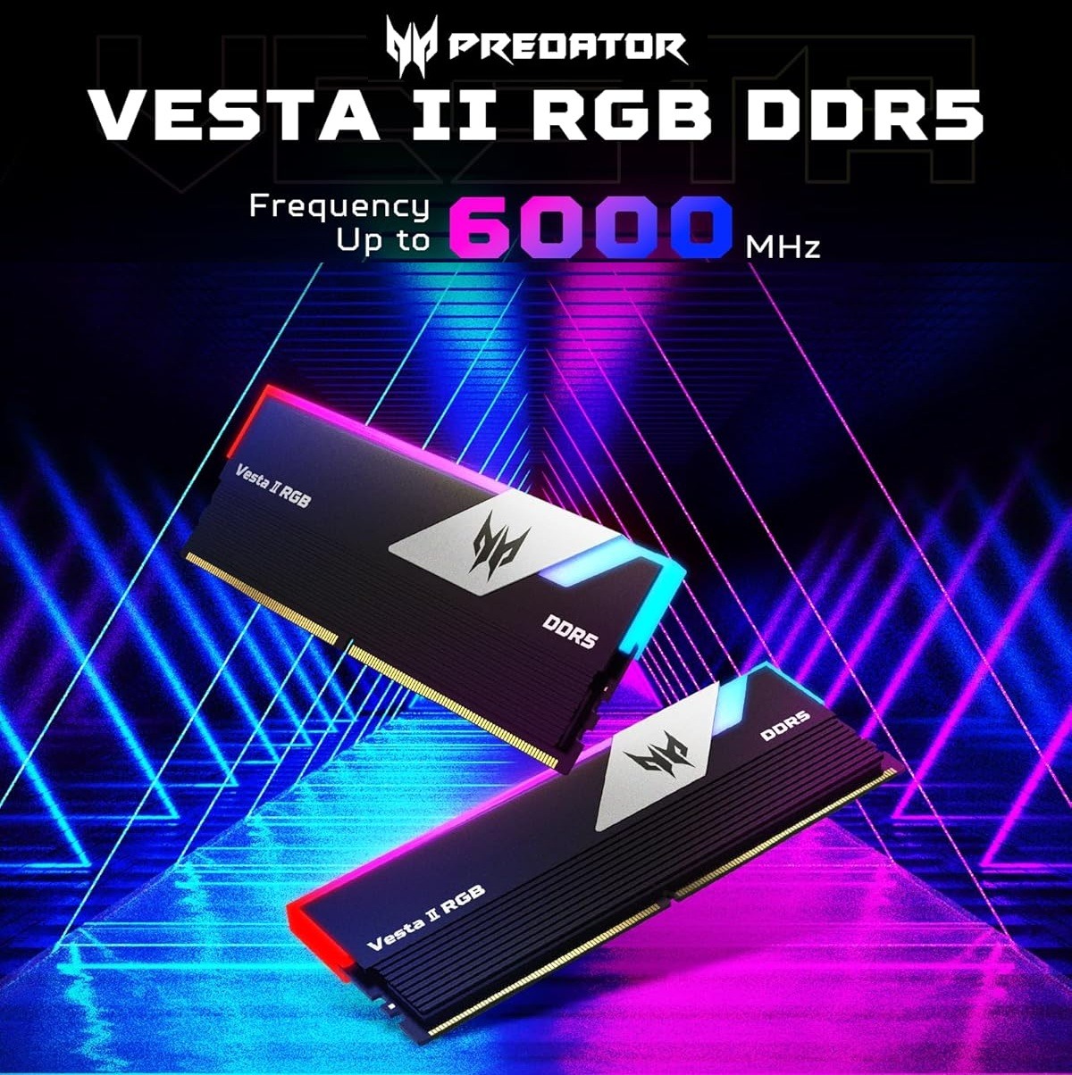 ACER Predator Vesta II RGB DDR5 32GB RAM Kit (2x16GB) 6000MHz CL32 1.35V PC5-48000 Gaming Memory , Intel XMP 3.0 & AMD EXPO , On-Die ECC , Aluminum Alloy Heat Sink | BLACK ~ BL.9BWWR.378