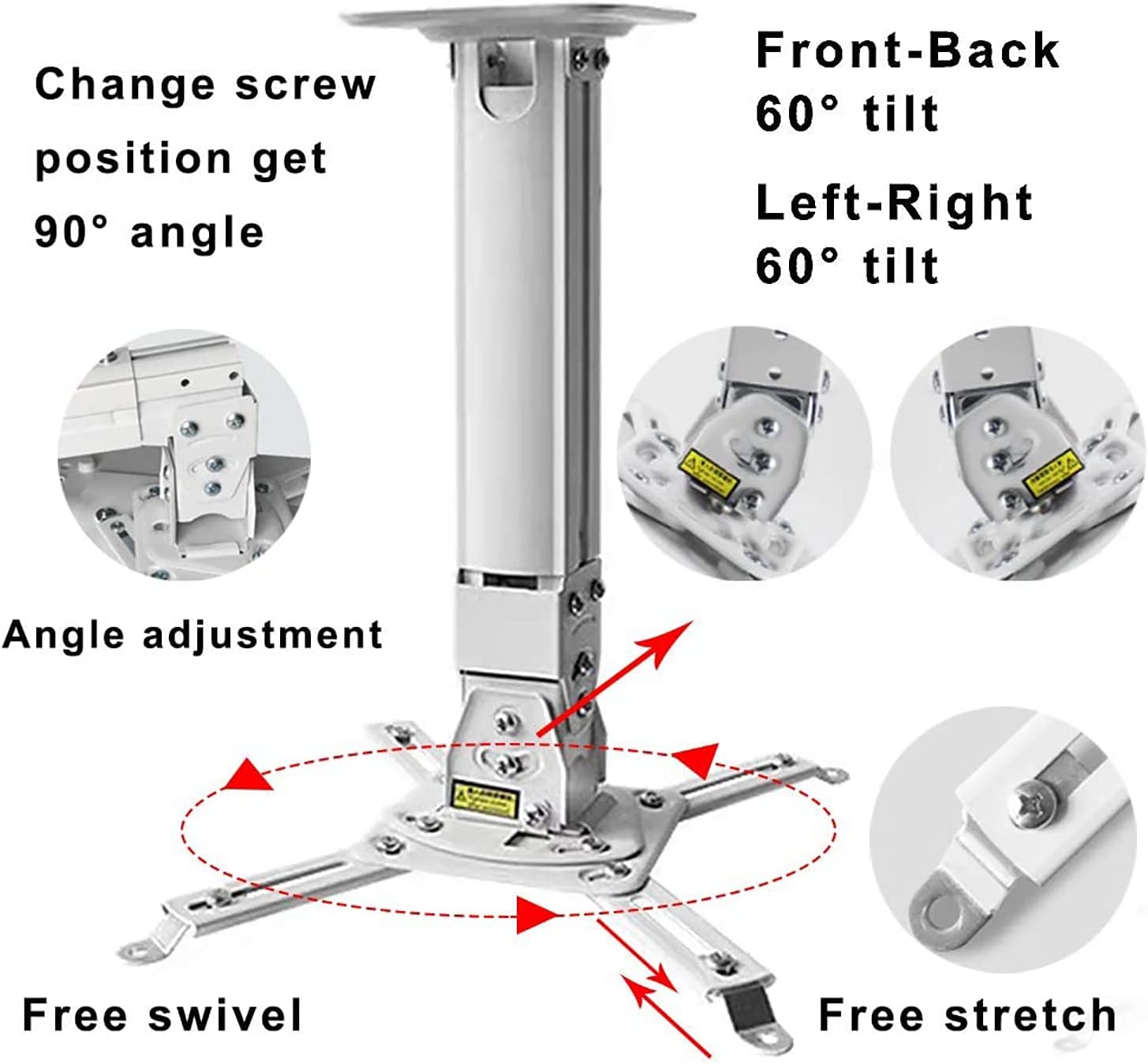 • [Flexible & Adjustable]: The adjustable projector mount with 4 extendable paws featuring with 60-degree tilt, 30-degree swivel, hitting all the right viewing angles. Lock it and stay still well after adjustment.