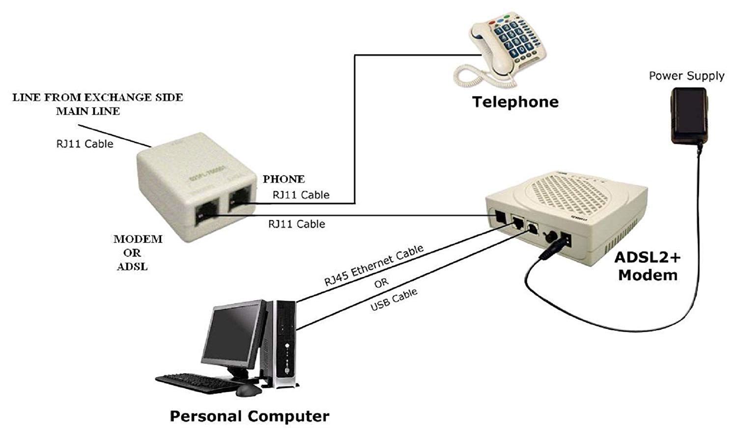 ADSL line filter will filter out the unwanted noise and connection problems that DSL internet service causes on a telephone. The filter consists of a jack one side in which plugs main line and other side 2 jacks in which you can plug telephone and DSL connection. These jacks are clearly marked telephone and DSL for proper connection.
