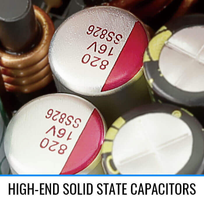 - High-end solid state capacitors provide great DC output quality for improved noise filtering and low ripple