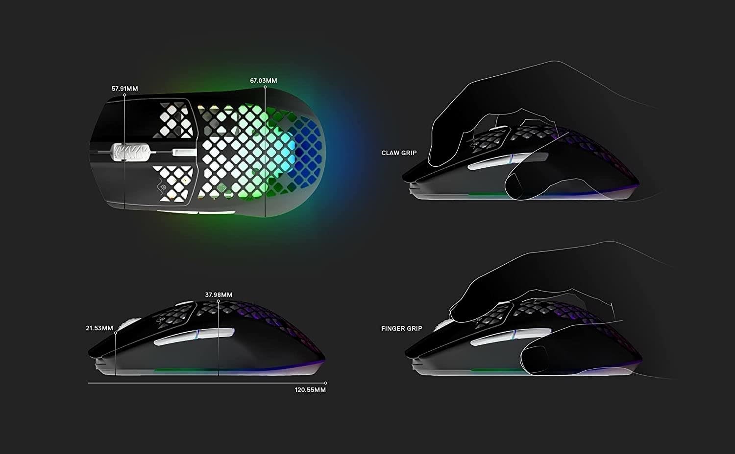 SteelSeries Aerox 3 Wireless RGB Gaming Mouse 1000Hz / 1 ms 18K DPI – Ultra Lightweight Super-Fast – Water Resistant – Quantum 2.0 Wireless – Golden Micro IP54 Switches – TrueMove Air Optical Sensor | Black OPEN BOX