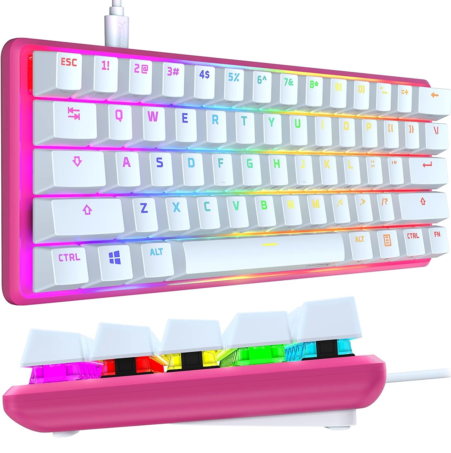 HyperX Alloy Origins 60 – Mechanical Gaming Keyboard, Ultra Compact 60% Form Factor, Double Shot PBT Keycaps, RGB LED Backlit, NGENUITY Software Compatible – Linear HyperX Red Switch | PINK WHITE