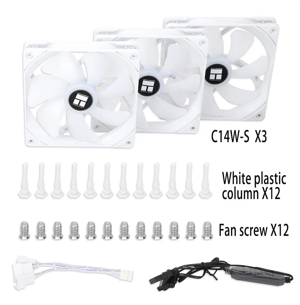 Thermalright TL-C14W-S X3 , 140mm PWM ARGB Fans, Triple Pack, Customizable Lighting, Static Pressure Addressable RGB, Motherboard SYNC with 5V-3PIN, up to 1500 RPM , 74.3 CFM (MAX) | WHITE