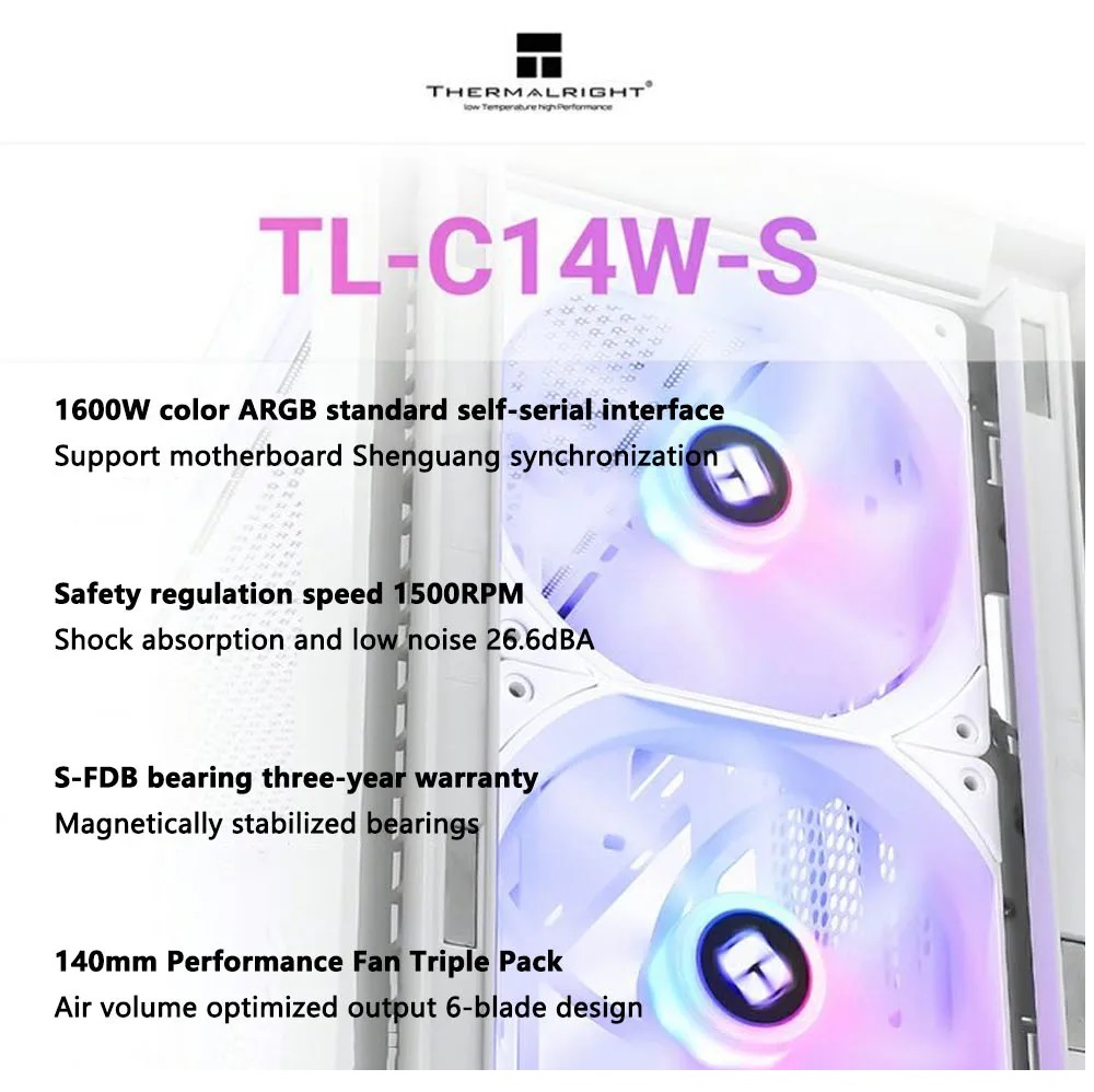 - Besides enhancing speed, the TL-C14W-S series creates a more balanced performance, which includes reducing noise. Turbulence, resonance, and pitch from air dispersal were all taken into consideration. Thermalright dissected the fan’s anatomy to produce