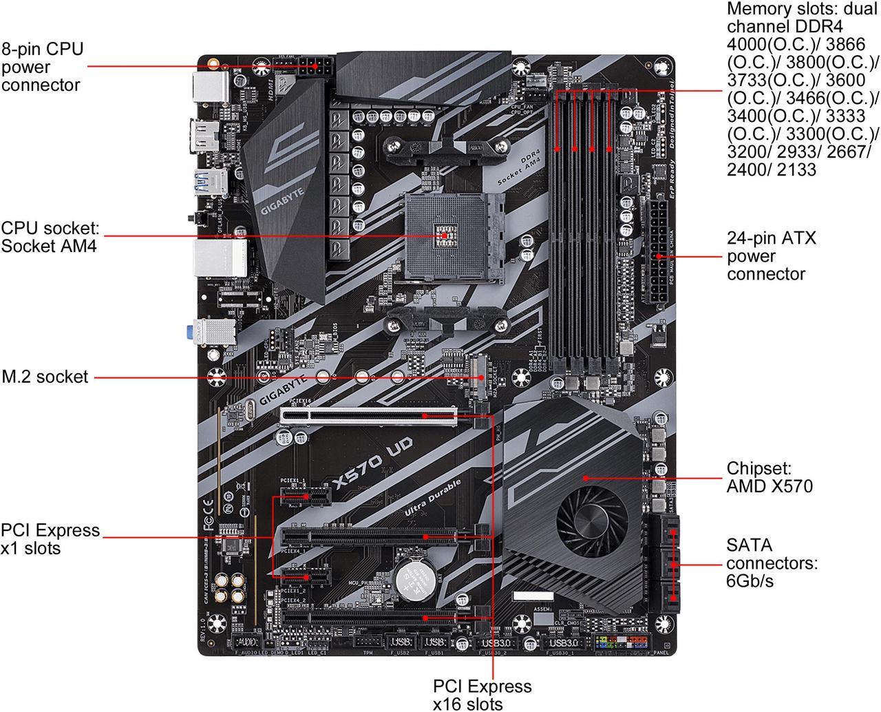AMD X570 UD Motherboard for AMD Ryzen™ 5000 Series with 10+2 Phases Digital VRM, PCIe 4.0 x4 M.2 Connector, PCIe 4.0 x16 Slot Armor with Ultra Durable™ Design, GIGABYTE Gaming GbE LAN with Bandwidth Management, HDMI 2.0