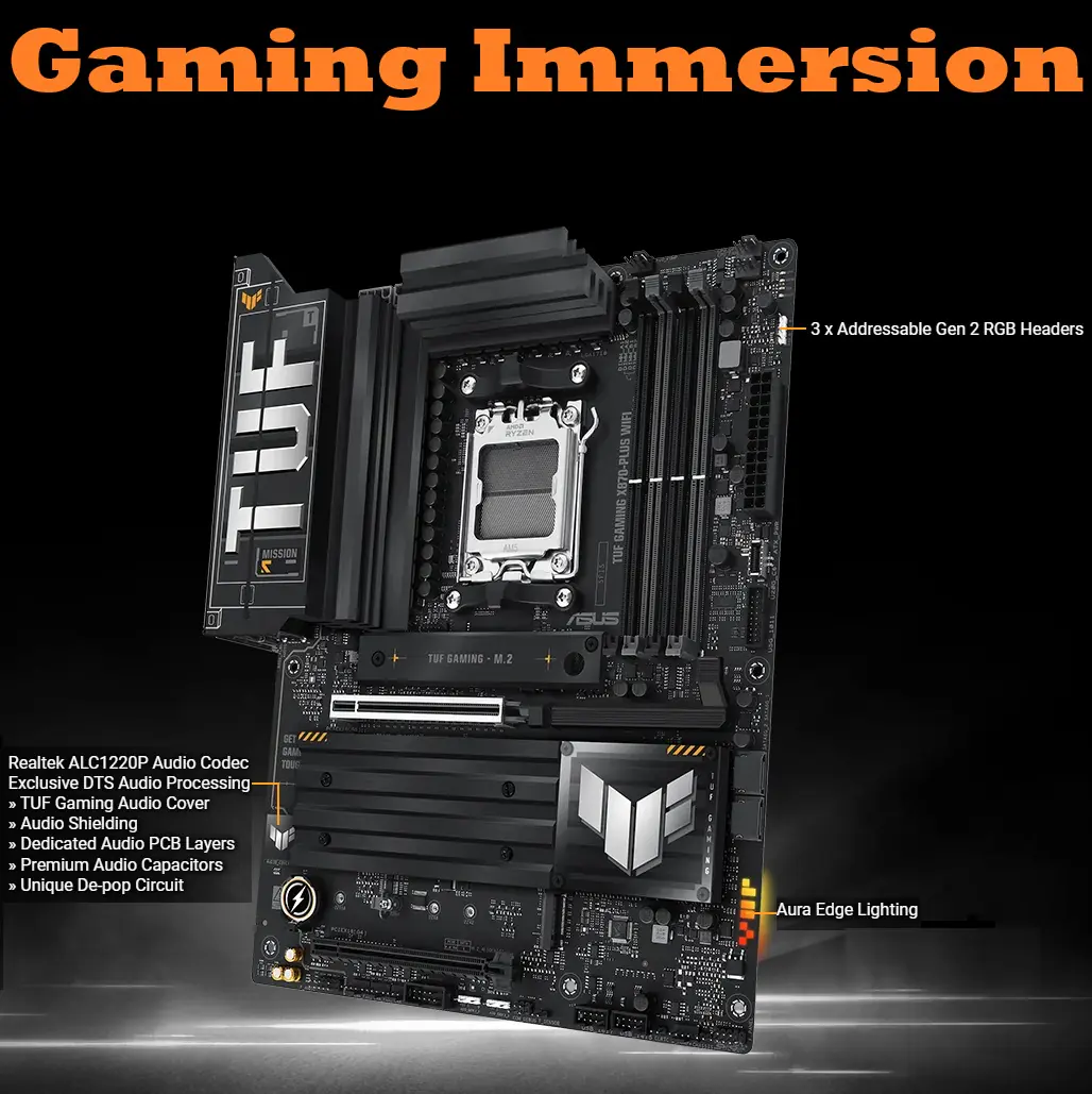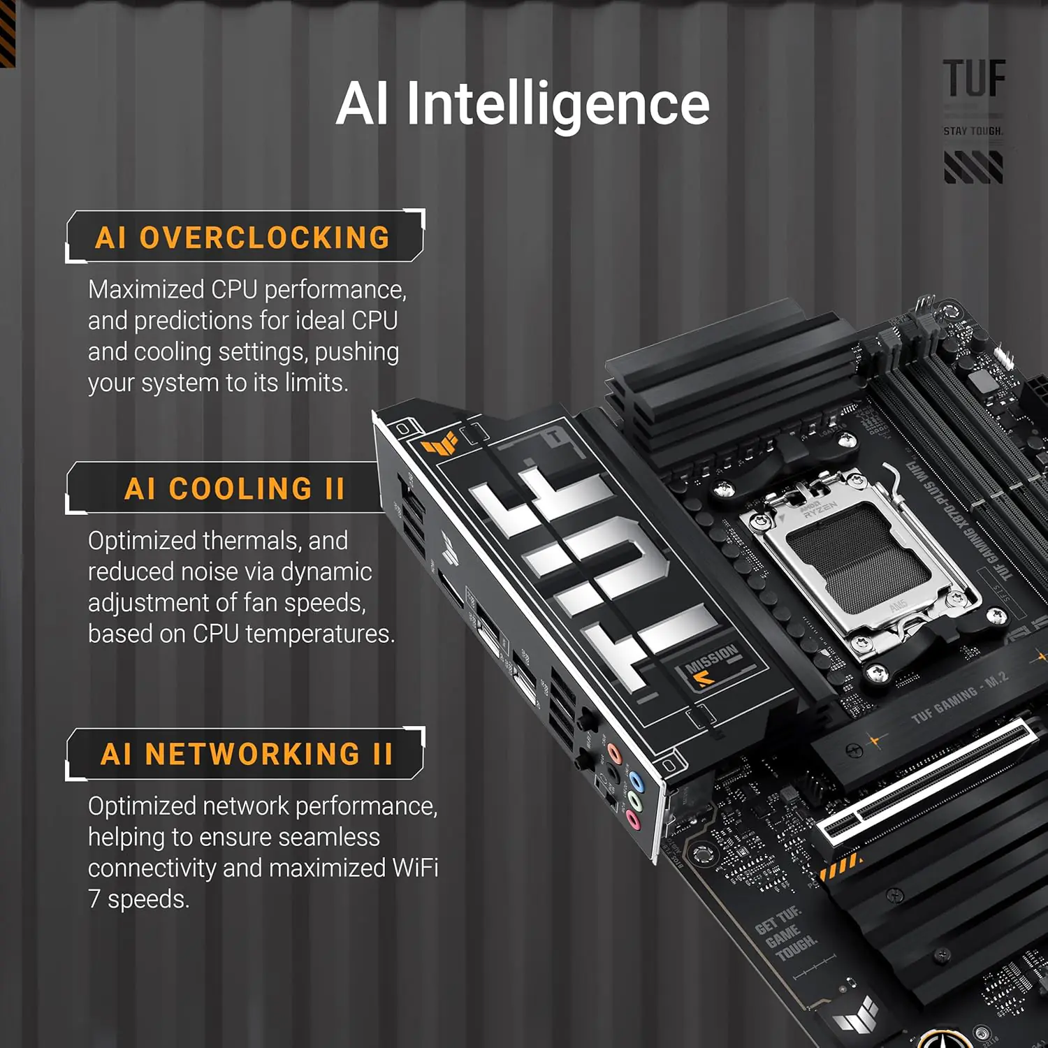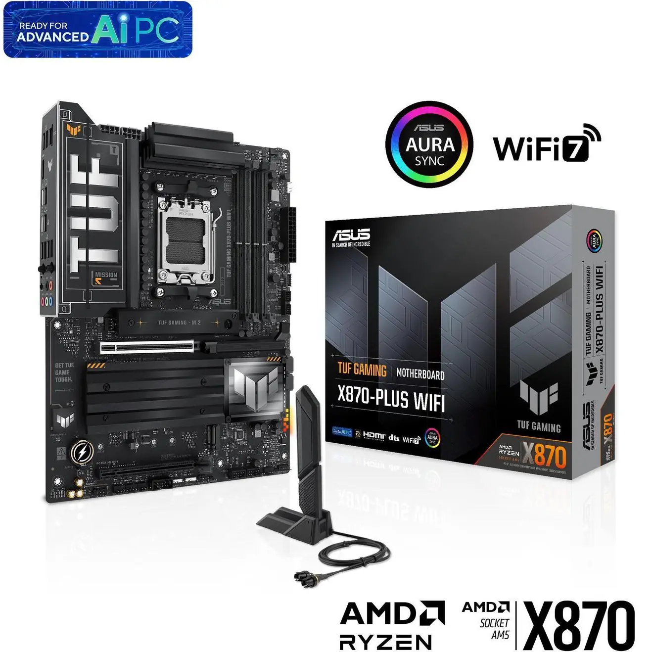 ASUS TUF GAMING X870-PLUS WIFI AMD AM5 X870 ATX motherboard, 16+2+1, 80A SPS power stages, DDR5, PCIe 5.0 Ready, four M.2 slots, Wi-Fi 7, 2.5Gb LAN, HDMI, USB4 40Gbps, SATA 6 Gbps, USB 20Gbps Type-C
