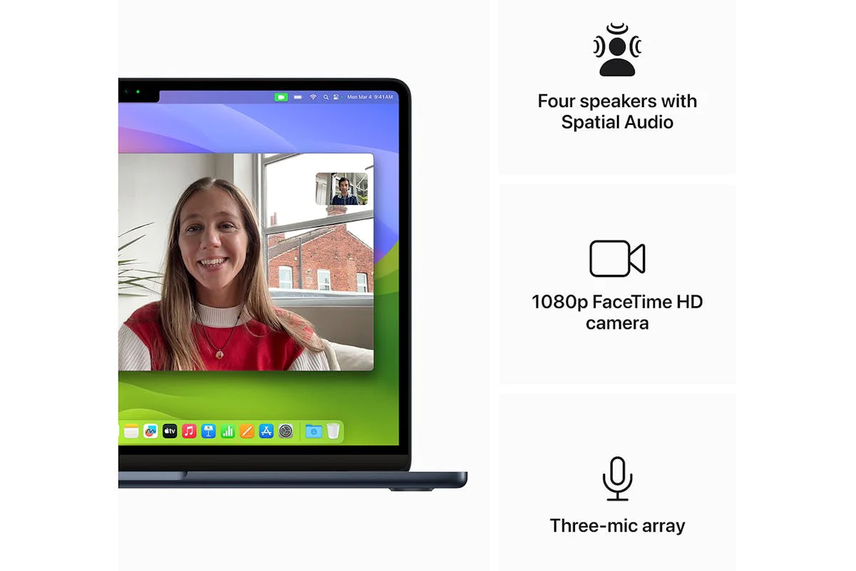 - High-Definition Camera: Features a 1080p FaceTime HD camera for clear video calls.