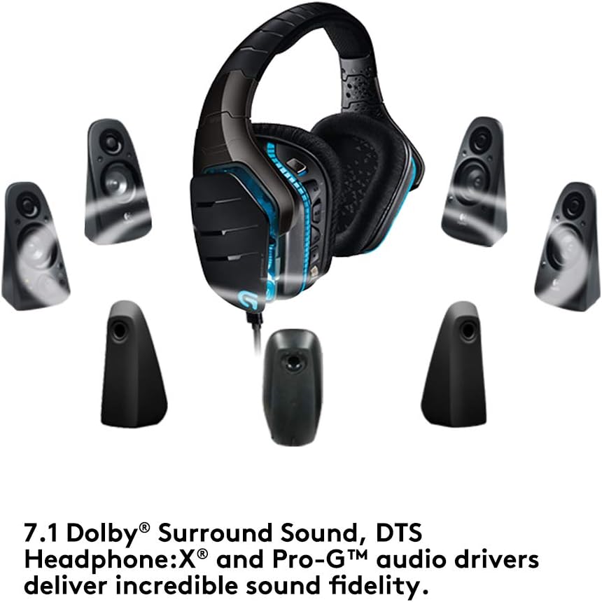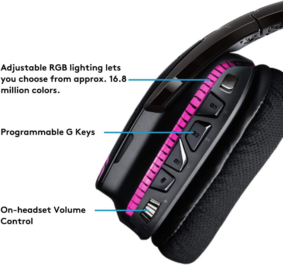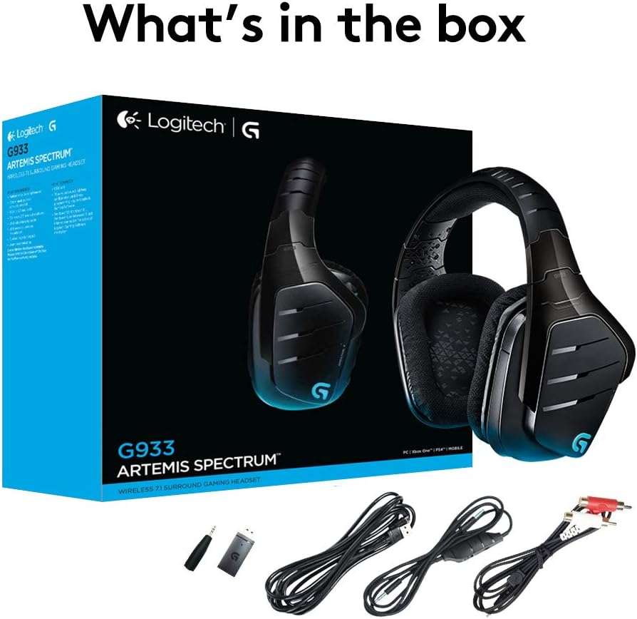Logitech G933 Artemis Spectrum – Wireless RGB 7.1 Dolby and DTS Headphone Surround Sound Gaming Headset – PC, PS4, Xbox One, Switch, and Mobile Compatible – Advanced Audio Drivers | Black