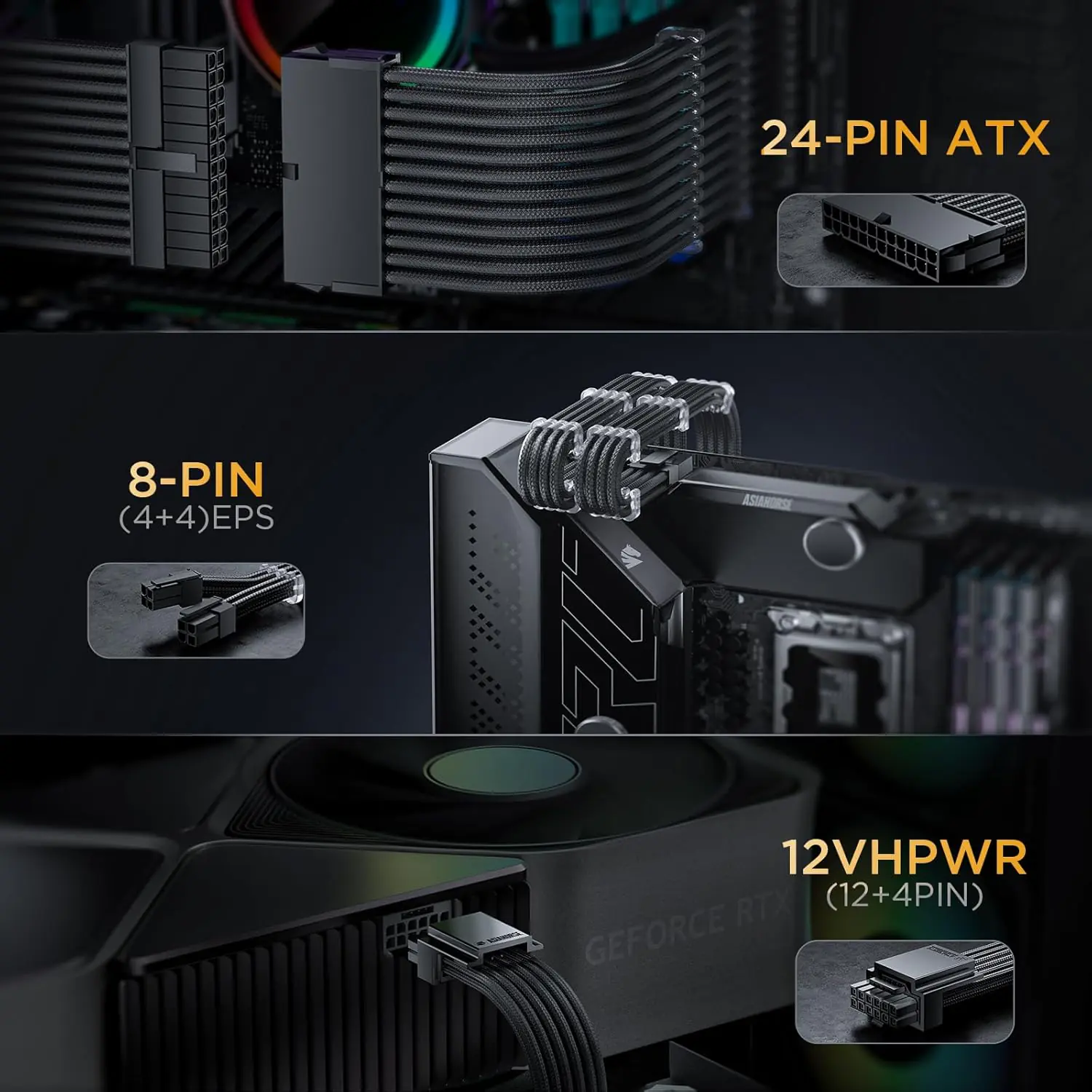 - Complete 4-in-1 Kit: Includes 24-pin ATX (x1), 8-pin (4+4) CPU (x2), and (12+4/3×8) PCIe GPU connector (x1) for versatile system compatibility.