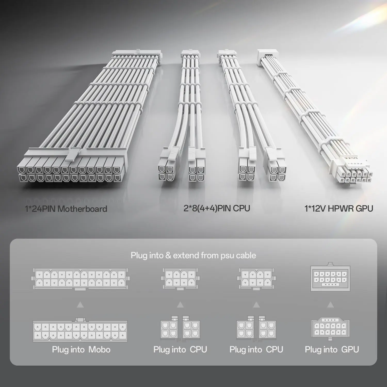 - 4-in-1 Cable Kit Design: Includes (24-pin x1) + (8-pin (4+4) x2) + (12+4/12+4 pin x1) connectors for maximum flexibility and compatibility.