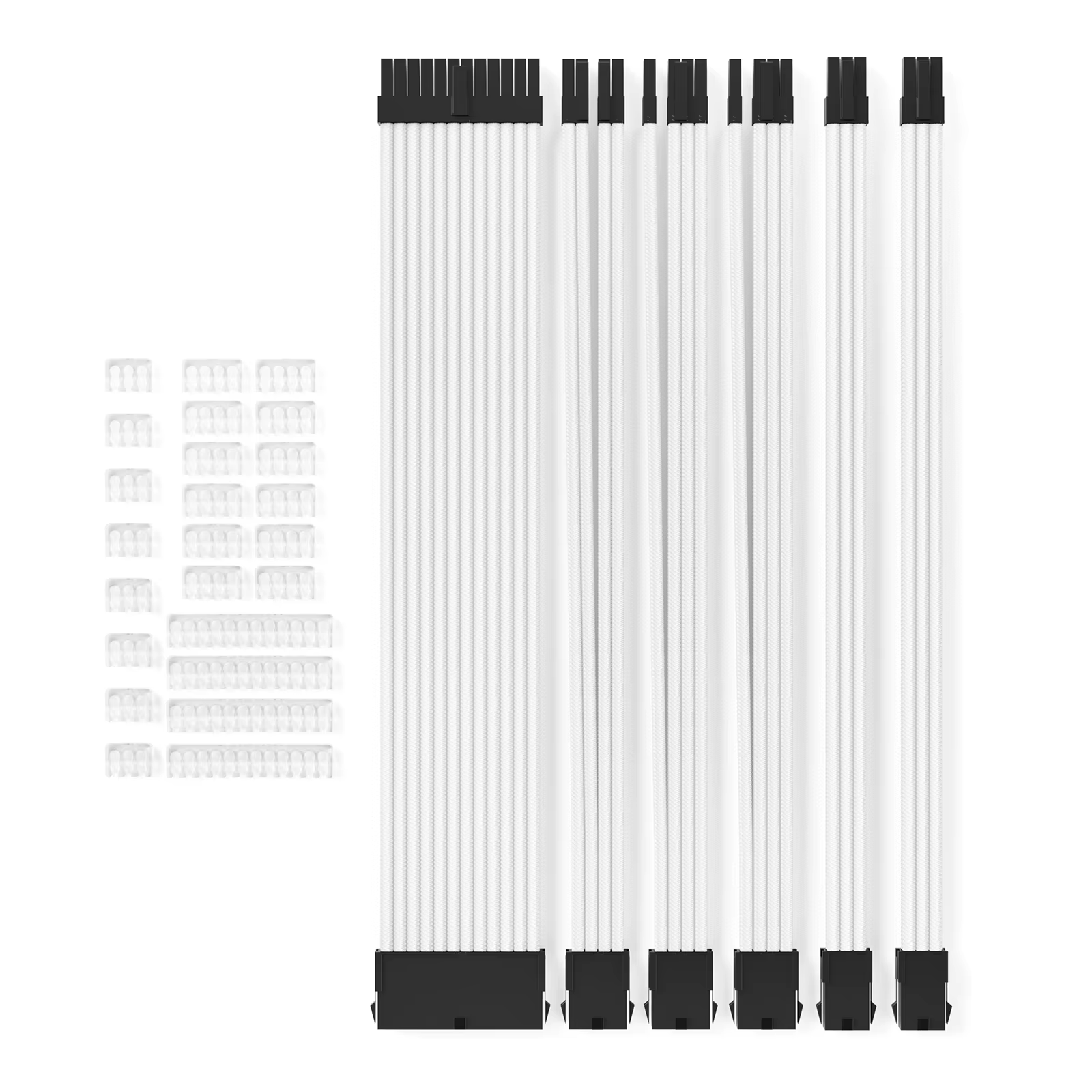 AsiaHorse 18AWG White Sleeved PSU Extension Cable Kit – 6 Pack, 300mm, PET Braided, Phosphor Copper Terminals, Durable & Flexible Cable Management Solution