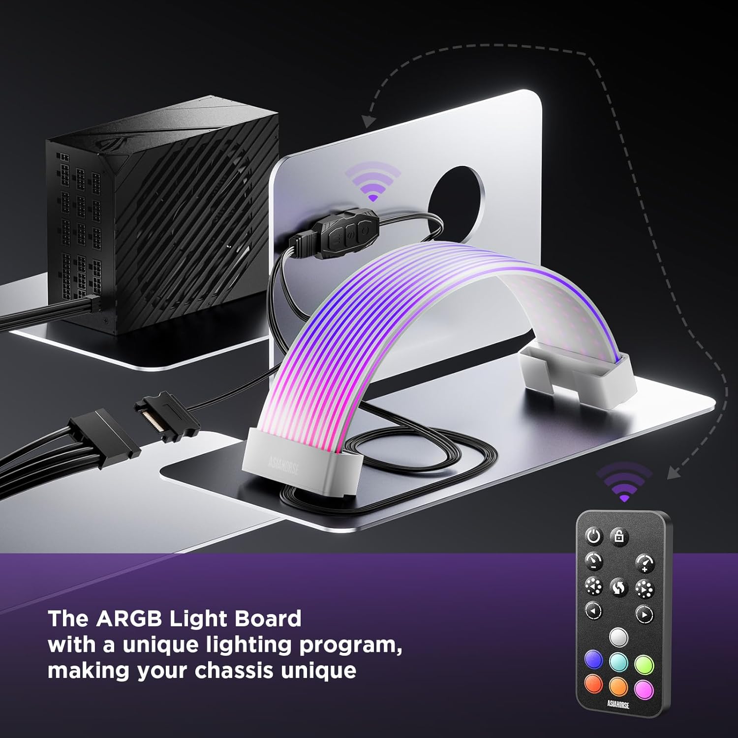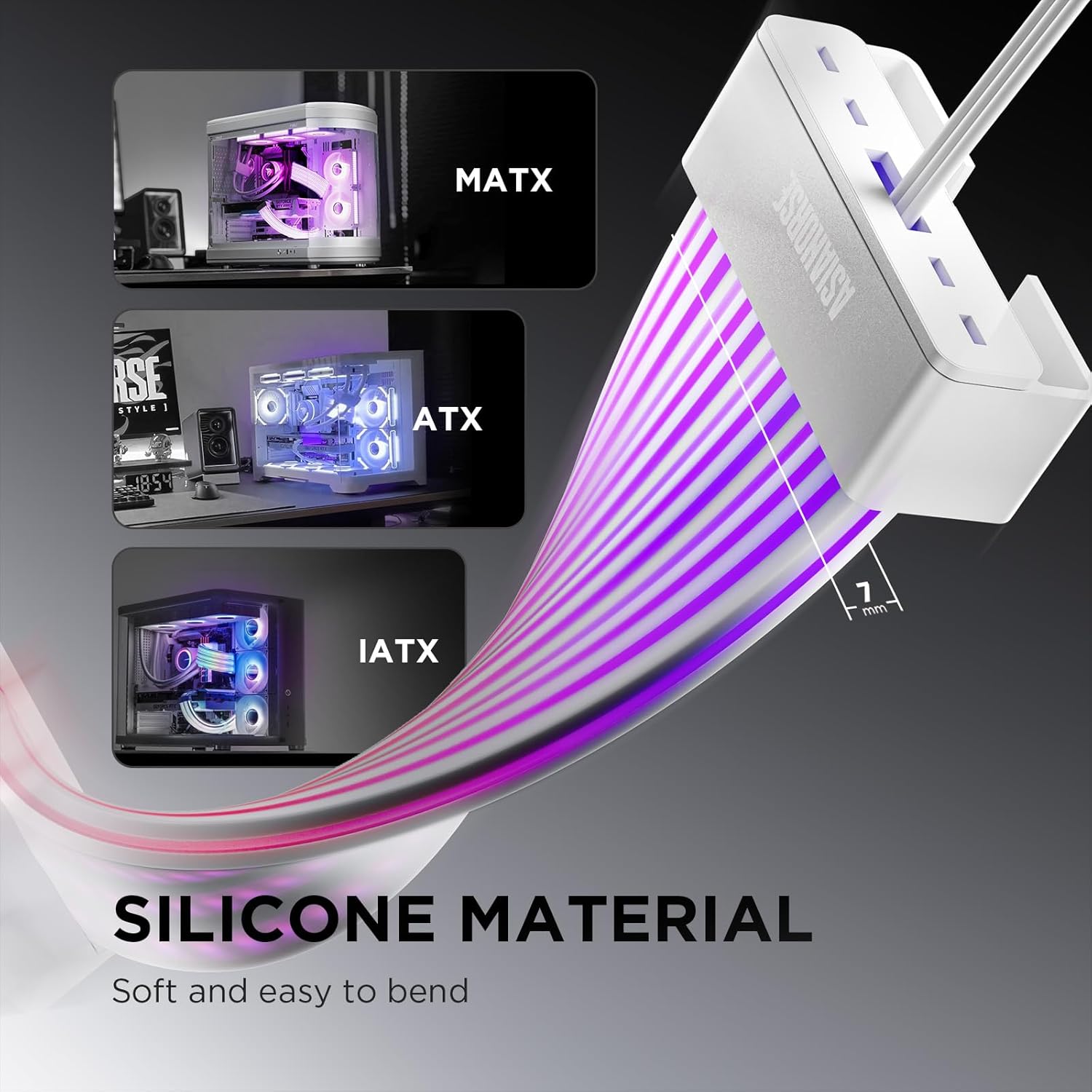 ASIAHORSE AURORA PRO ARGB PSU Cable Cover – 108 LEDs | 5V 3-Pin Sync | Fits 24-Pin & Dual 8-Pin GPU Cables | White Cover | Clean Aesthetic Cable Management