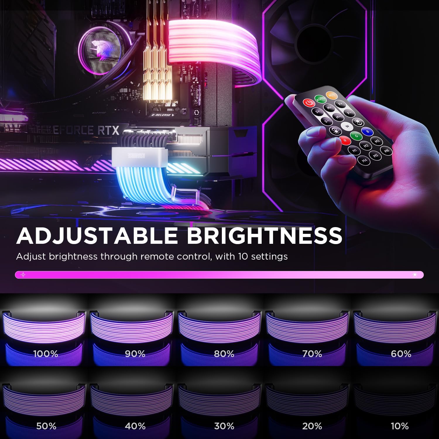 Compatible with ASUS Aura Sync, MSI Mystic Light, Gigabyte RGB Fusion, and ASRock Polychrome, ensuring your lighting stays in perfect harmony across all components. - Multi-Cable Compatibility: