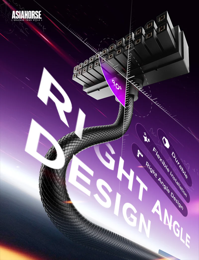 ASIAHORSE Hydrus 24-Pin ARGB PSU Extension Cable – 30cm Length, 18AWG, 12V RGB Lighting, 250W Rated Power, Premium PVC Build, for High-Performance PC Builds