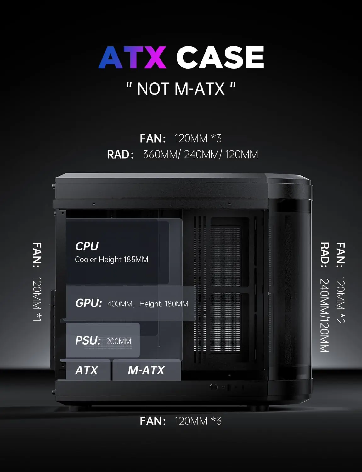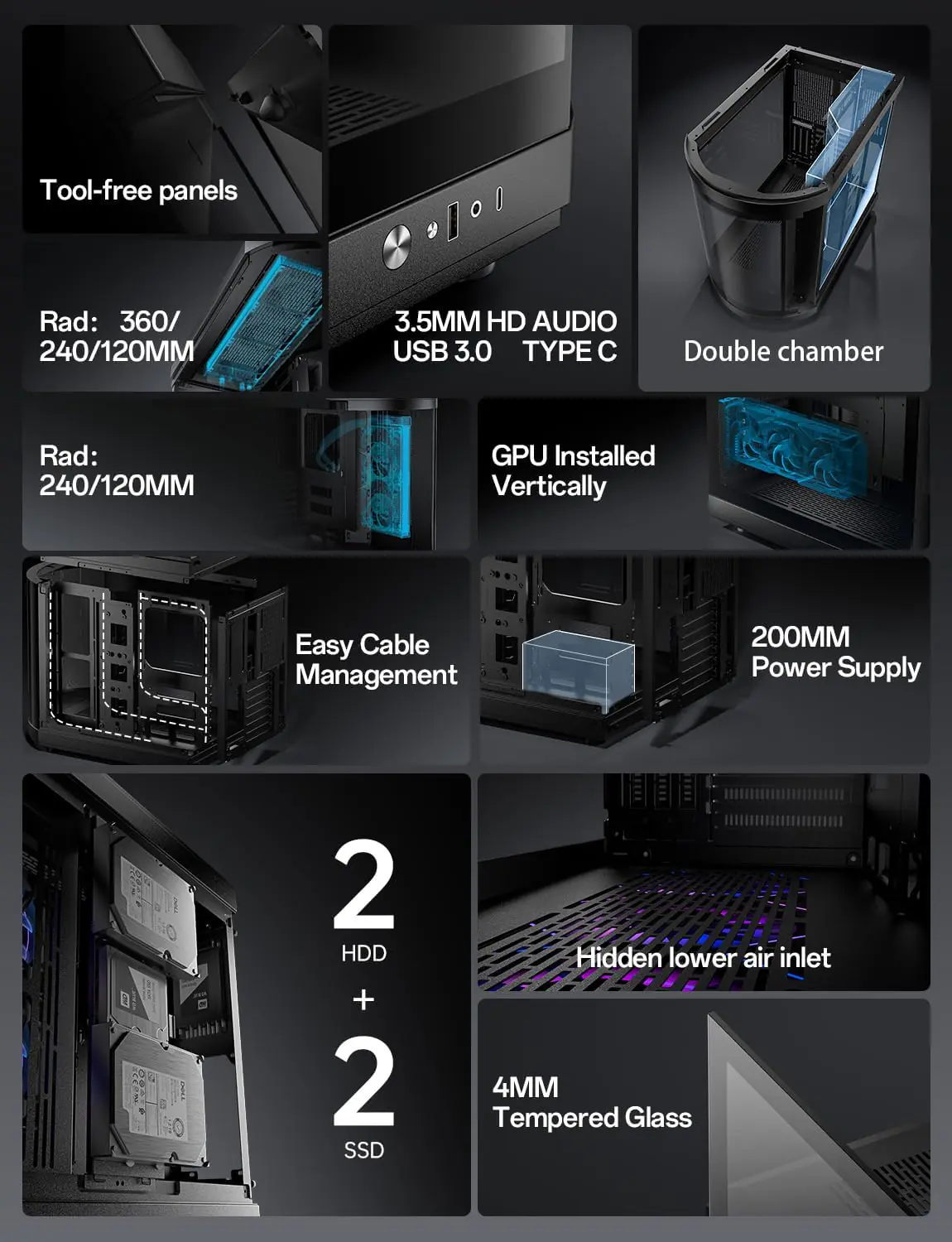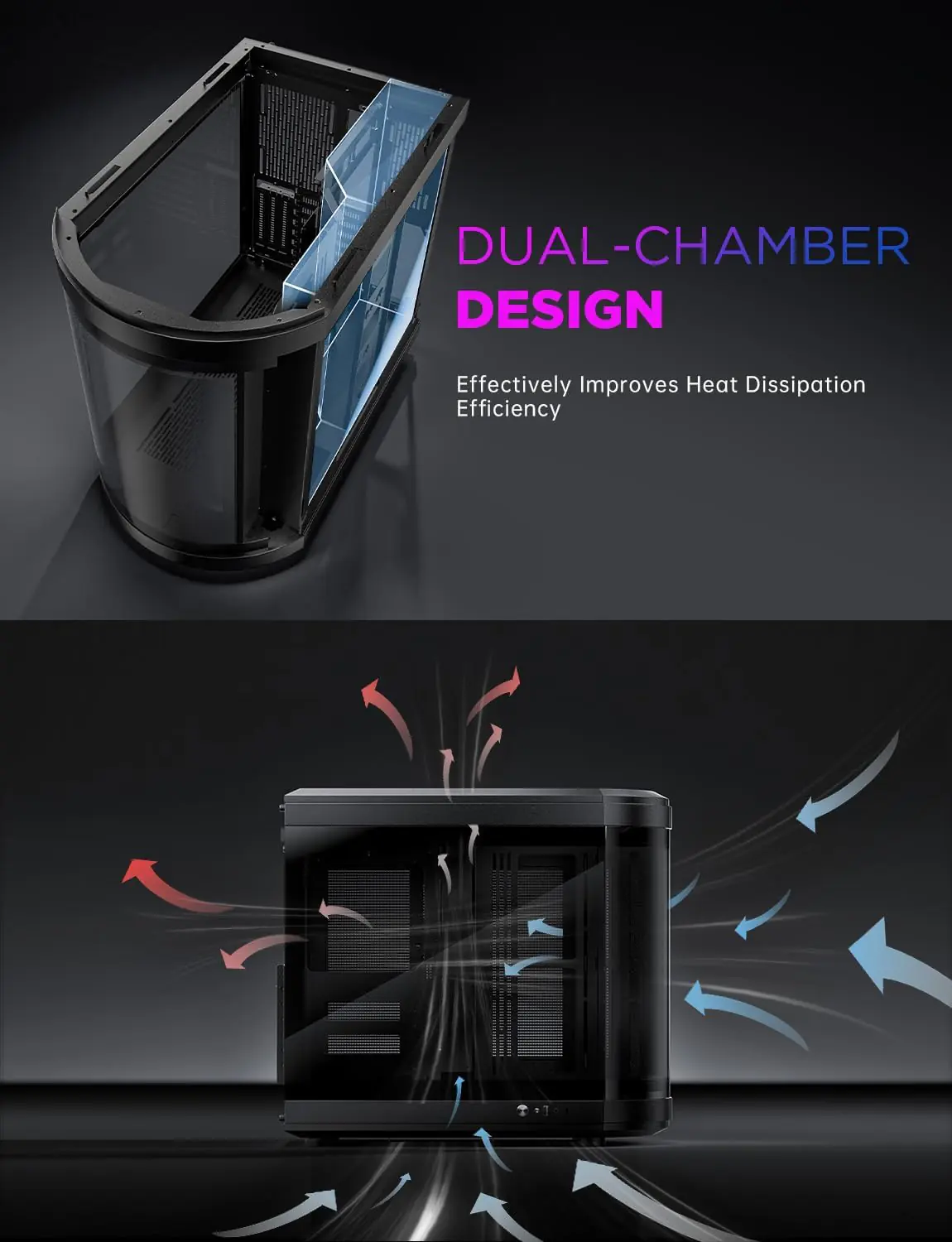 - Dual-Chamber Layout: Optimized structure for clean cable management and excellent airflow separation between components.