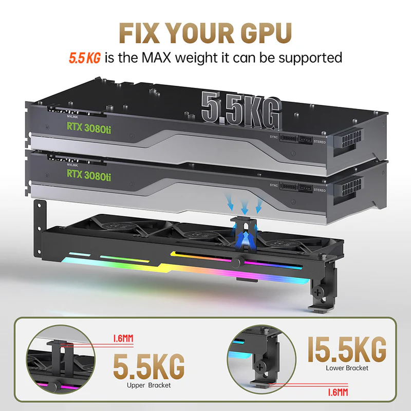 - Dual Protection Design: Combines a robust GPU support bracket with triple 80mm cooling fans to prevent GPU sag and enhance cooling performance.
