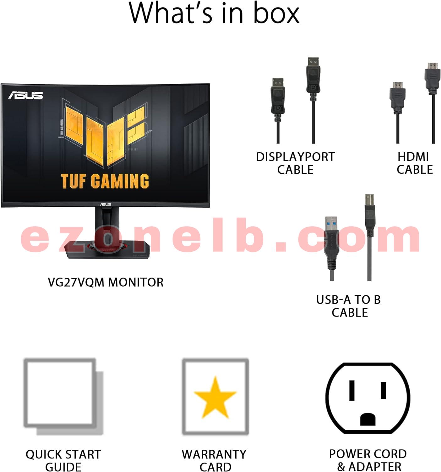 ASUS 27” 1080P TUF Gaming Curved HDR Monitor (VG27VQM) – Full HD, 240Hz, 1ms, Height Adjustable, Black