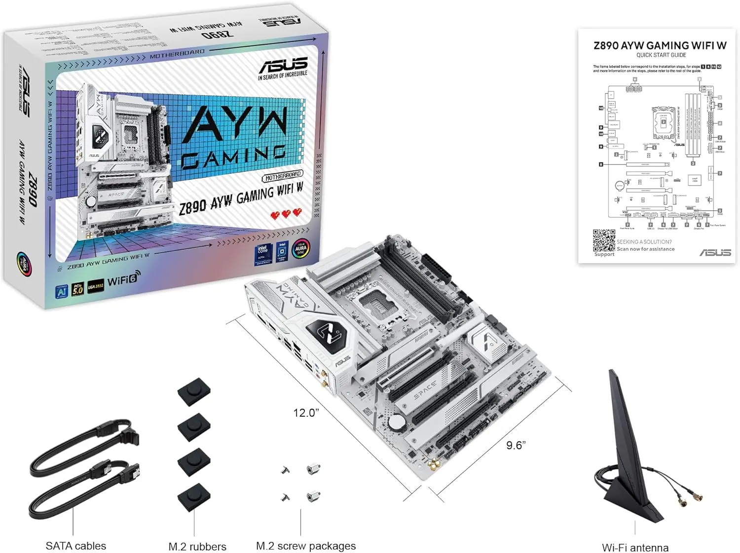 Asus AYW Gaming WiFi W Z890 DDR5 ATX Motherboard | Intel LGA 1851 | PCIe 5.0 & DDR5 | Wi-Fi 6 | USB 20Gbps Type-C | AI Cooling II | Thunderbolt (USB4) Header | M.2 Q-Latch
