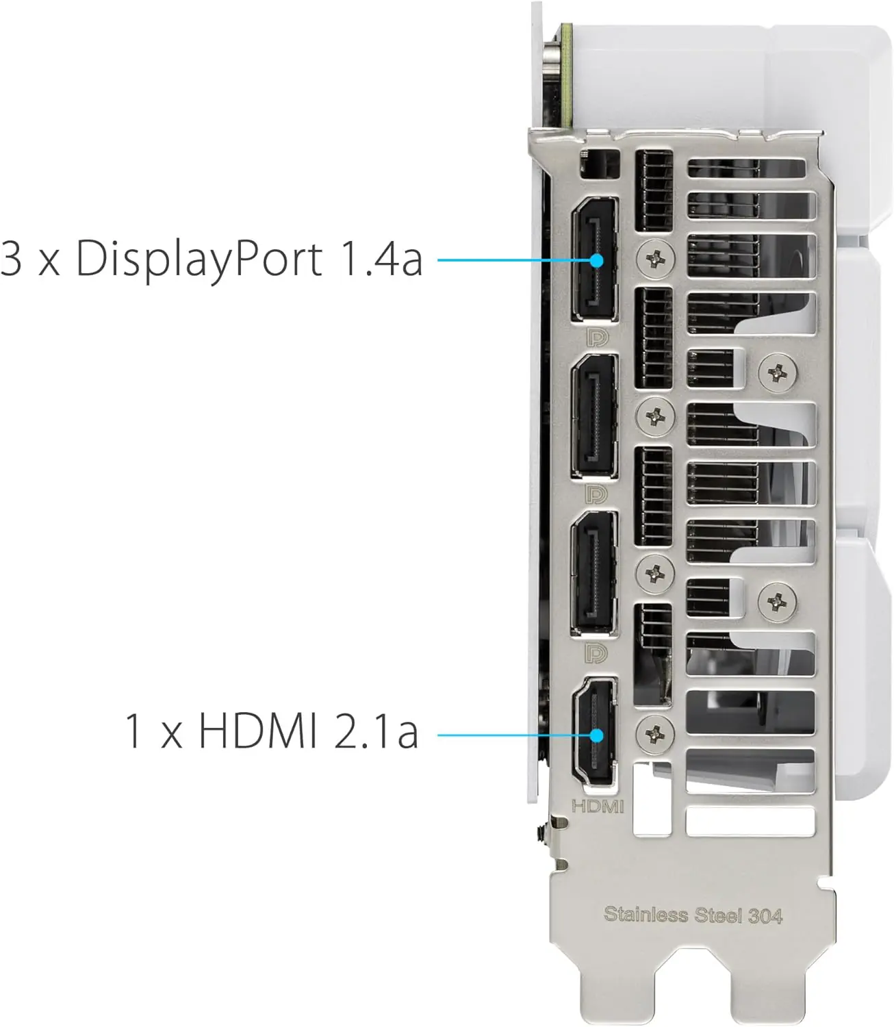| Display Outputs | 1x HDMI 2.1a, 3x DisplayPort 1.4a |