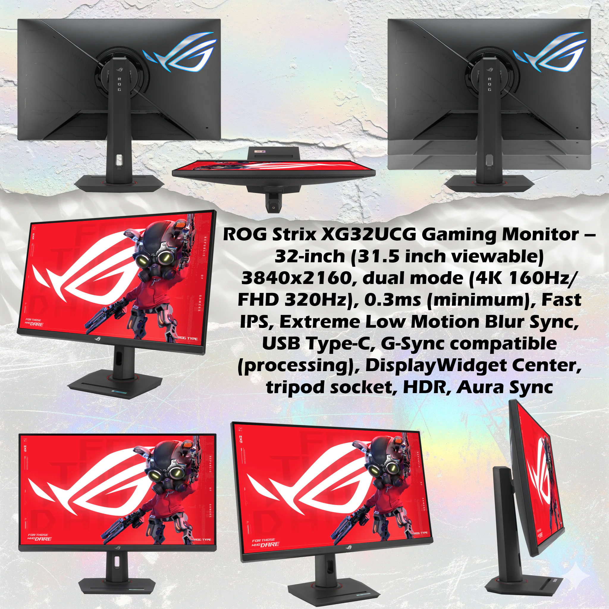ASUS ROG Strix XG32UCG – 32-Inch 4K UHD Fast IPS Gaming Monitor, Dual Mode 4K 160Hz Or FHD 320Hz, 0.3ms Response, ELMB Sync, G-Sync Compatible, HDR400, USB-C, Aura Sync, Ergonomic Stand ( Height, Swivel, Tilt ) Adjustable | 6 MONTHS WARRANTY