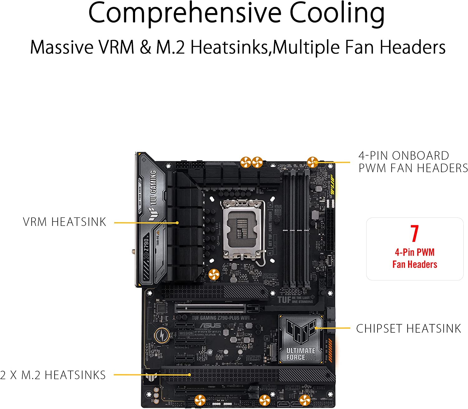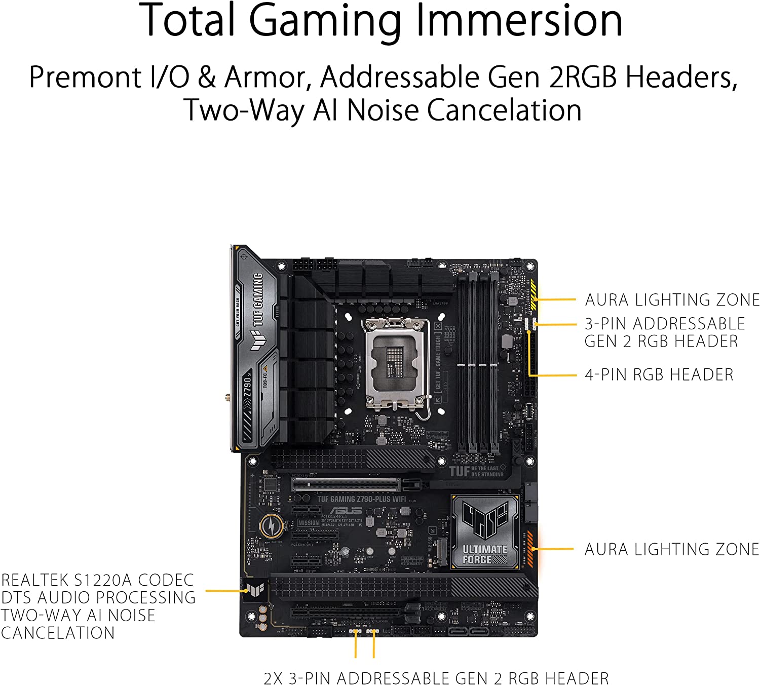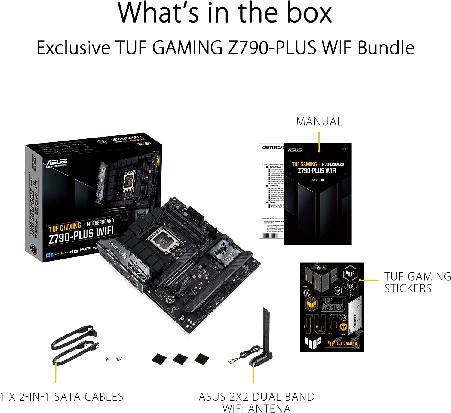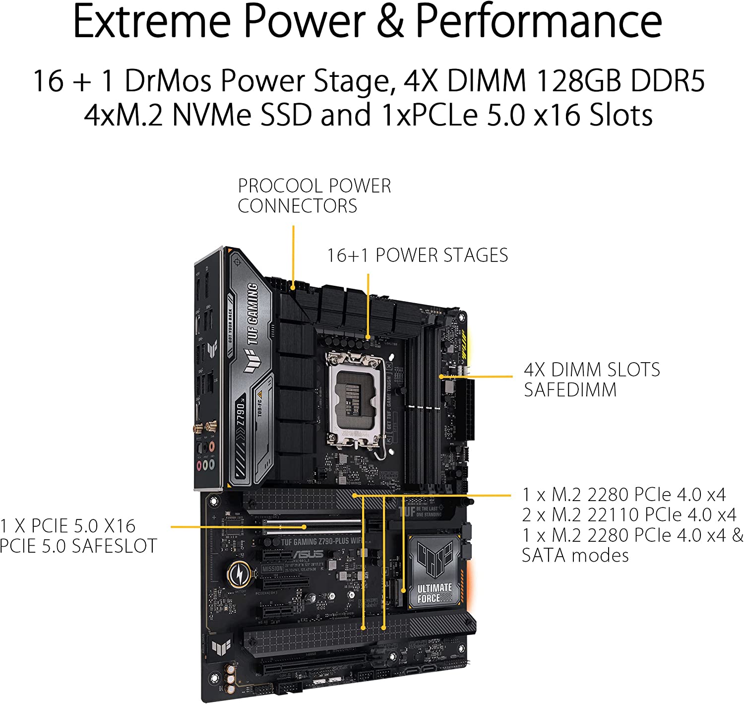 ASUS TUF Gaming Z790-PLUS WiFi Motherboard Intel Z790 LGA 1700 ATX (PCIe 5.0, Four M.2, 16+1 DrMOS, DDR5, 2.5GB Ethernet, Wi-Fi 6E, USB 3.2 Gen 2×2 Type C, Thunderbolt (USB4), Aura Sync, AEMP II)