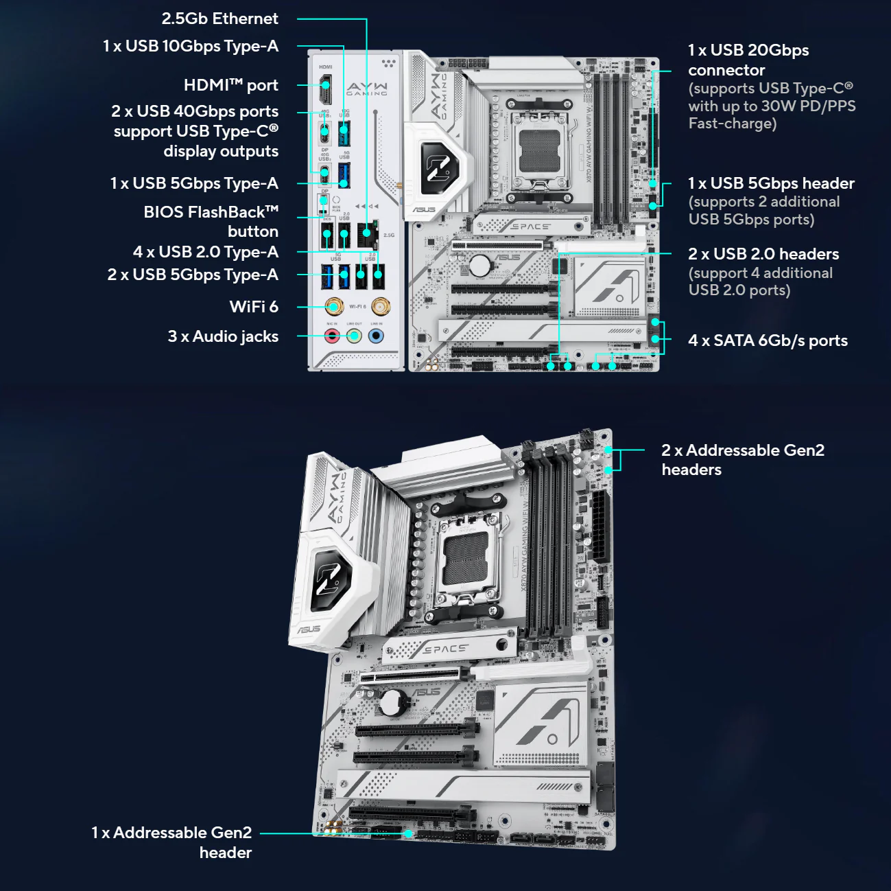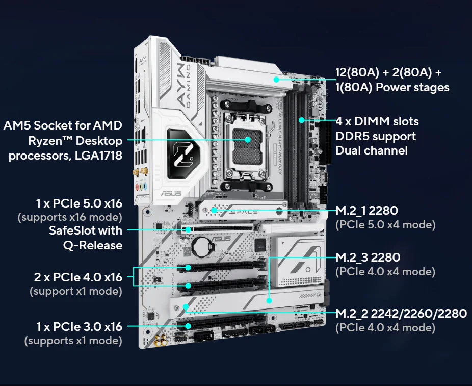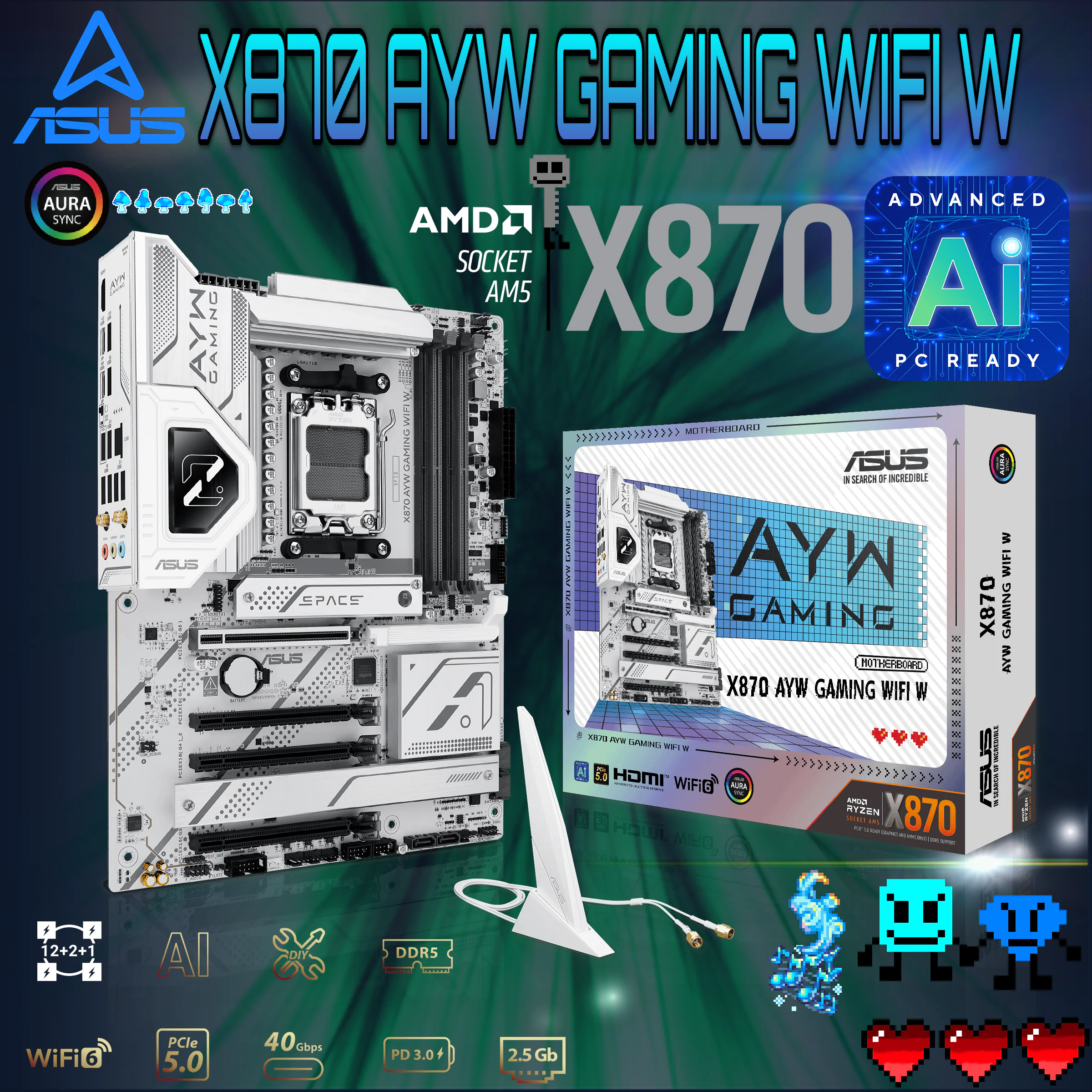 ASUS X870 AYW GAMING WIFI W AM5 ATX Motherboard With 12+2+1 80A DrMOS, DDR5 8000+ MT/s OC, PCIe 5.0 x16, 3x M.2, Wi-Fi 6, USB4 40Gbps, 2.5Gb LAN, USB PD 3.0, Aura Sync RGB | SILVER