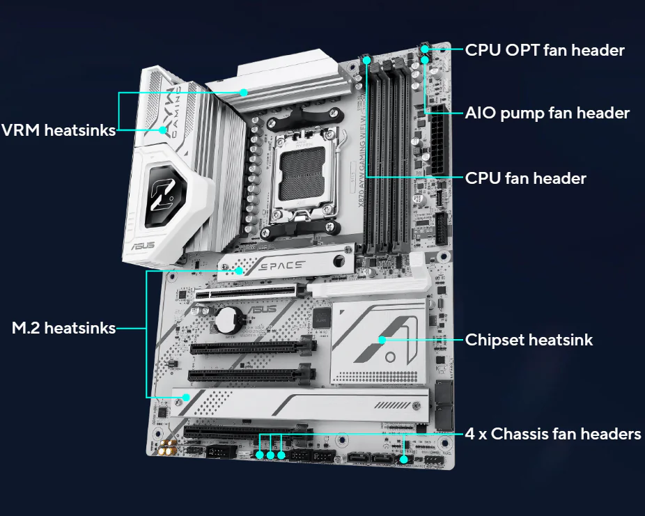 - Fan Xpert 4 & Hybrid Headers: Auto-tuning, multiple thermal sources, and extreme quiet mode.