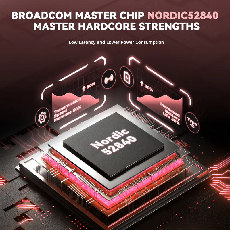 Custom esports-grade MCU ensures stable wireless transmission, low latency response, and efficient power management for uninterrupted gaming sessions.