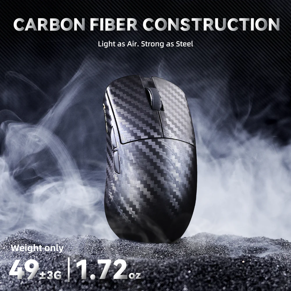 ATTACK SHARK R11 ULTRA Carbon Fiber Wireless Gaming Mouse With 49g Superlight Design, PAW3950MAX Sensor, Nordic 52840 MCU, 8000Hz Polling Rate, And Tri-Mode Connectivity | Weave Black