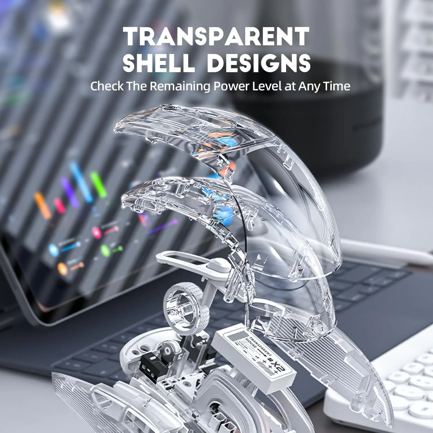 ATTACK SHARK X2 Pro RGB Gaming Mouse – Semi-Transparent Shell, Magnetic Charging Dock, 3 Modes (2.4GHz/Bluetooth/Wired), 5 DPI Levels, Silent Click, White