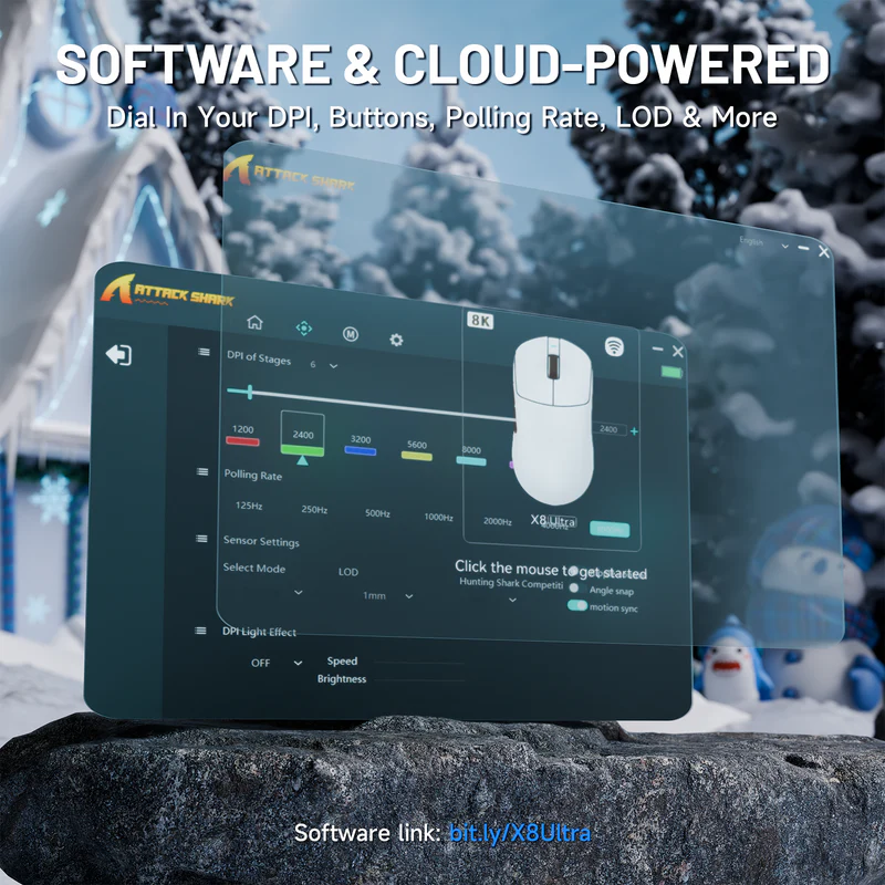With an adjustable DPI range from 50 to 42,000, the X8 Ultra adapts perfectly to any playstyle—from ultra-low sensitivity precision aiming to high-speed competitive movement. - True 8KHz Wireless Polling Rate