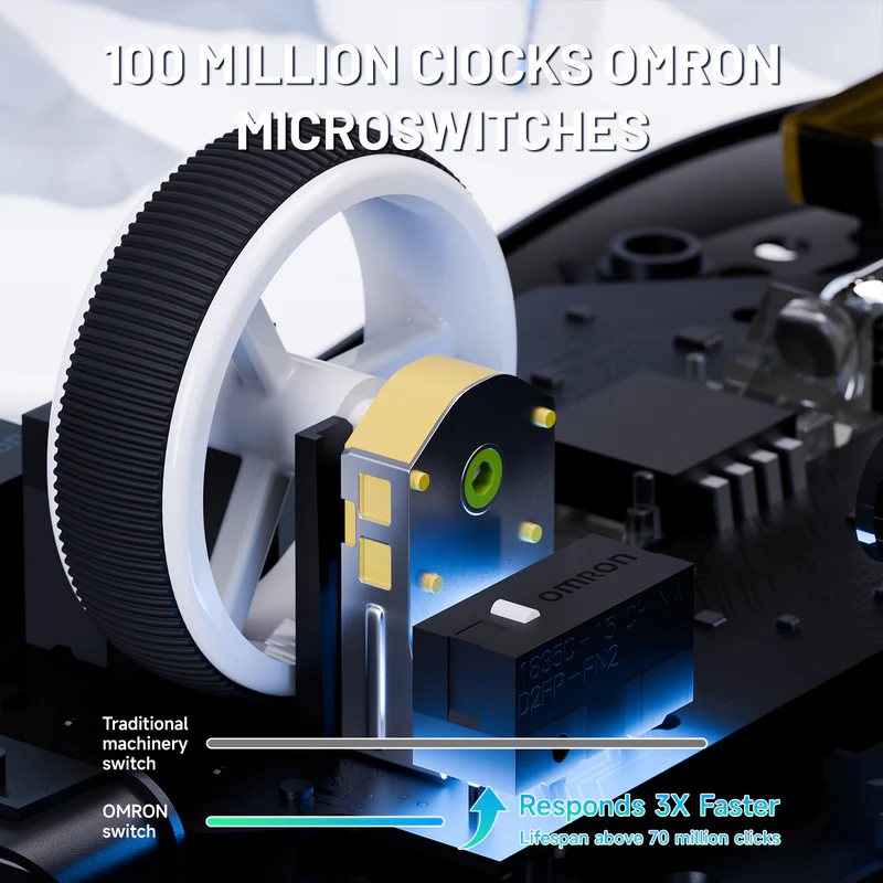 Special surface coating enhances grip and comfort while maintaining a premium, clean white aesthetic ideal for modern gaming setups. - 100 Million Click Omron Microswitches