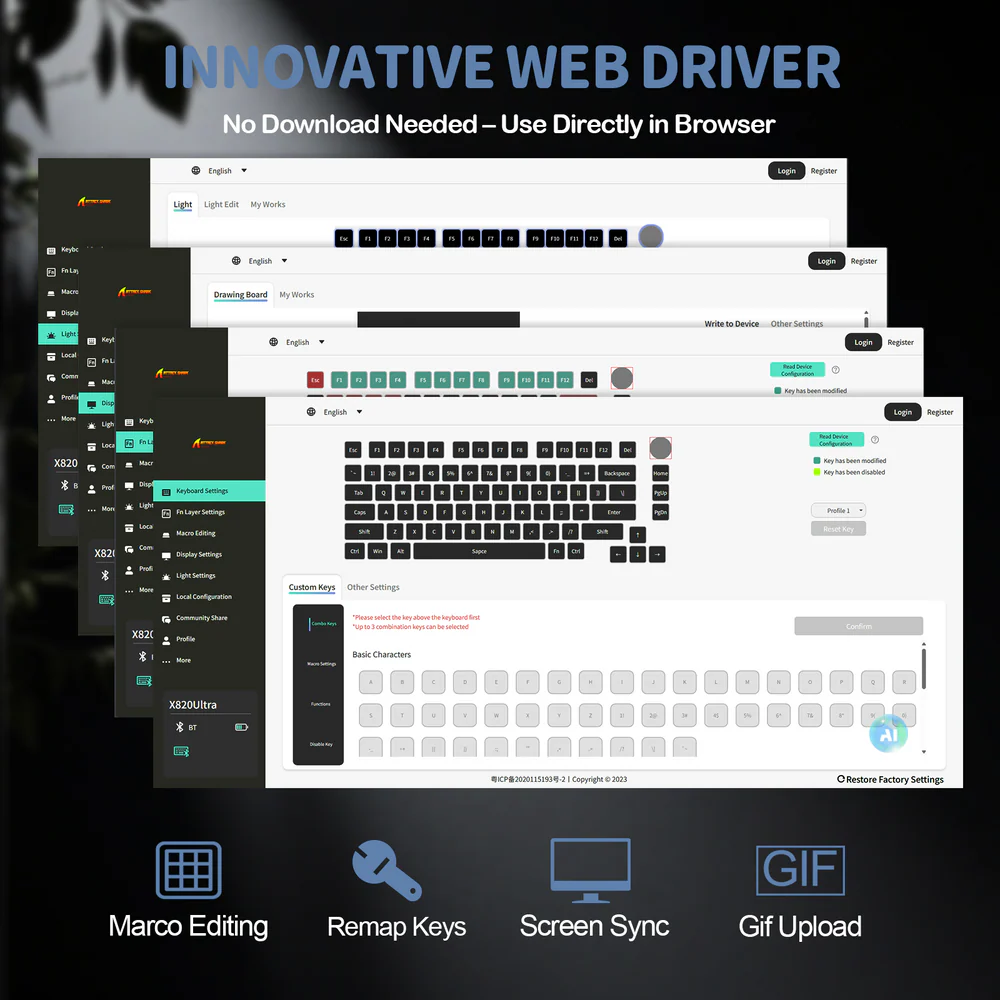 - Web-Based QMK Driver Support : Customize macros, key mapping, and lighting directly from your browser using qmk.top.