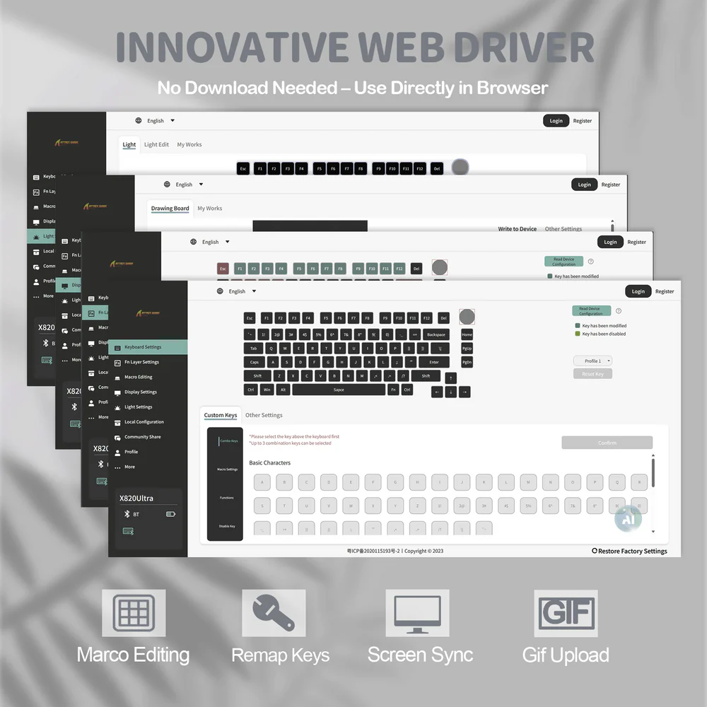 - Web-Based QMK Driver Support : Customize macros, key mapping, and lighting directly from your browser using qmk.top.