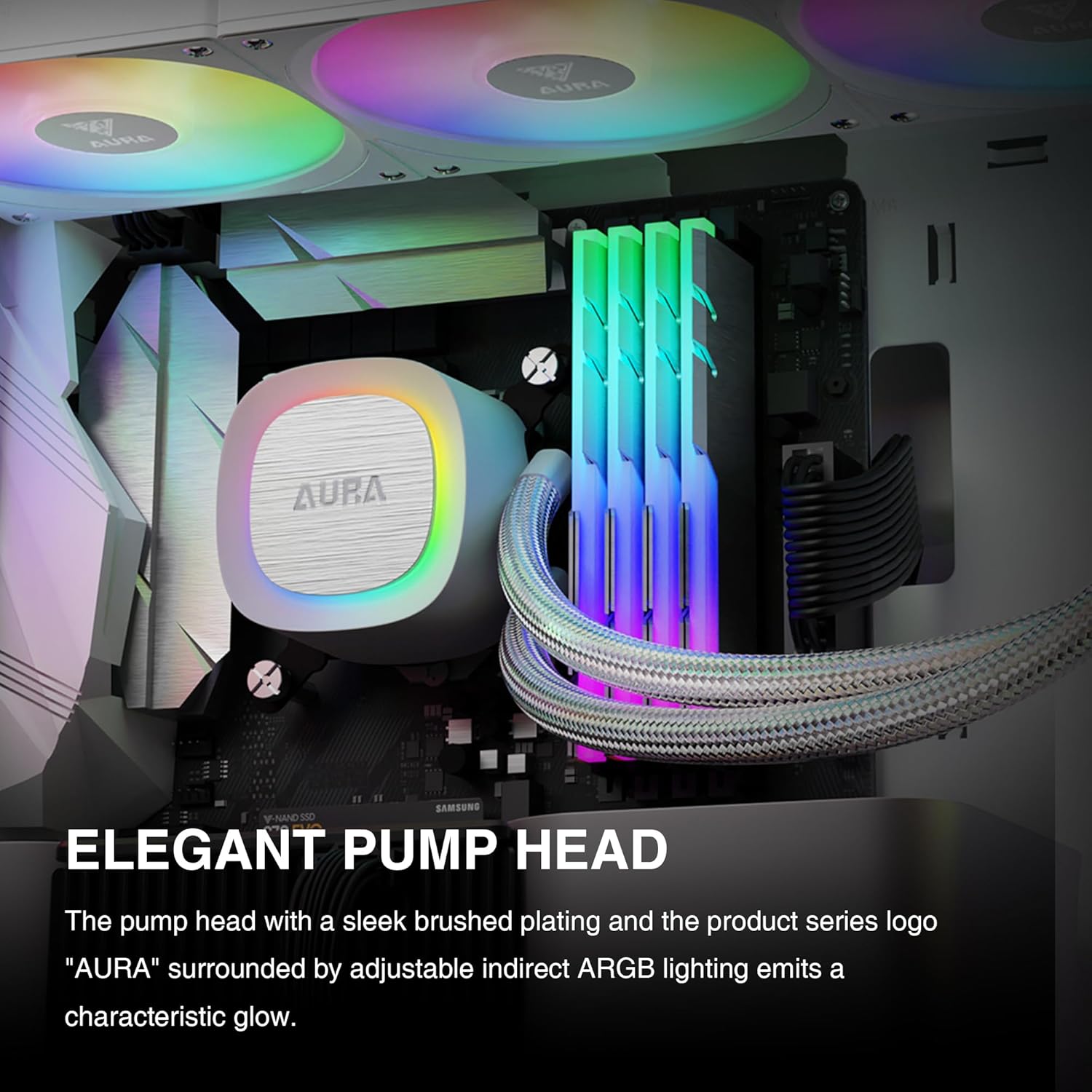 - Airflow 360mm White Water Cooling System with 3 High Airflow ARGB PWM Case Fans: Features 3 high-performance fans for superior airflow & cooling efficiency, ensuring your CPU stays cool under high workloads
