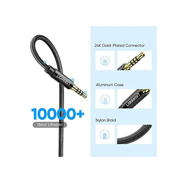 UGREEN 3.5mm Male to Female Extension Audio Cable – Nylon Braided,1.5M Black | 40674