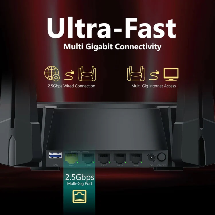 - 2.5G Multi-Gigabit Port; 1× 2.5 Gbps WAN + 1× 2.5 Gbps LAN 3× Gigabit LAN ports + 1× USB 3.0 port ensure max flexibility and boosted throughput.